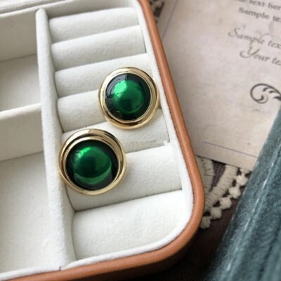 ピアス S925針 グリーン サークル シンプル ヴィンテージ エナメル 真珠 バロック 幾何 ラウンド 楕円形 スタッド 緑 絶妙 #C861-2