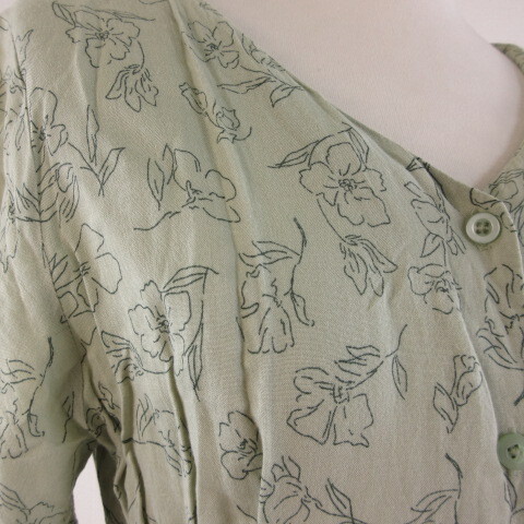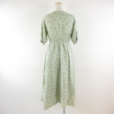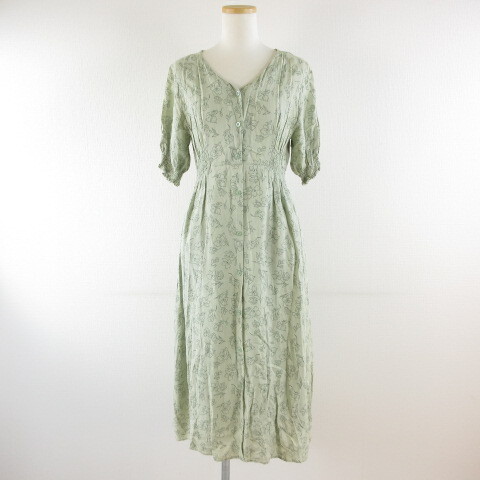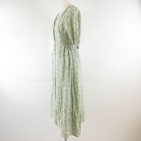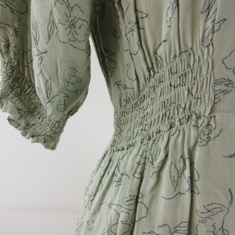 アースミュージック&エコロジー EARTH MUSIC & ECOLOGY ウエストシャーリングワンピース 半袖 ロング 花柄 緑 ミント F *T782 レディース