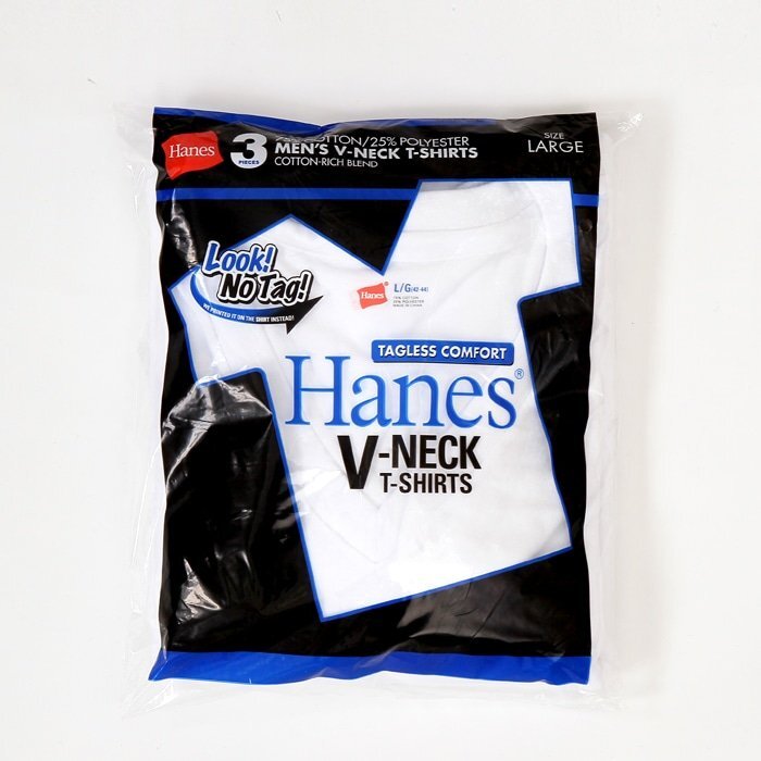 青パック3pcksTシャツ半袖、【新品】正規品 中国製 へインズブランズ ジャパン㈱ リニュアル ブルーパック Vネック3セットTシャツ 天竺、綿75%ポリエステル25% 速乾、シワになりにくく丈夫です。 ネックが伸びにくい、定番、人気商品です 3枚入りセット、タグレスです 同じ写真を各サイズで使用しています 税込み価格3190円(価格2900円)