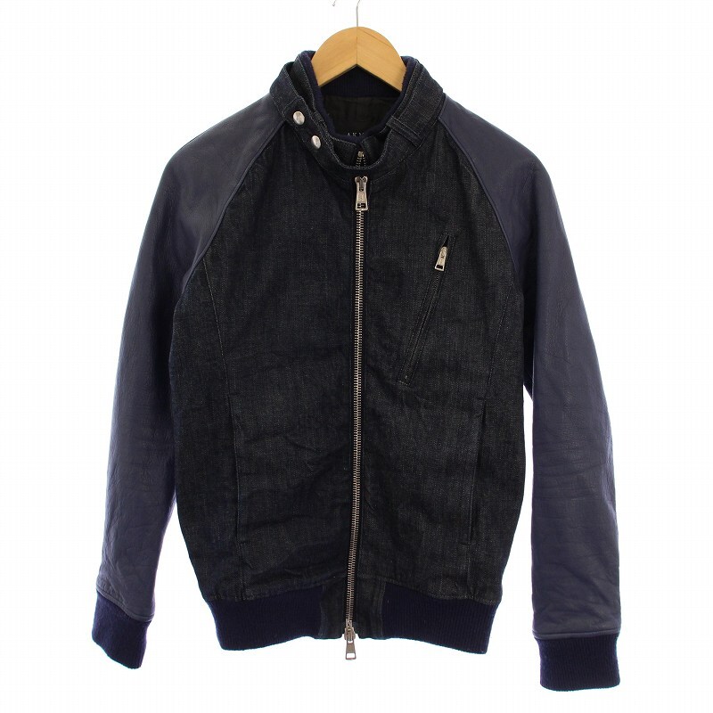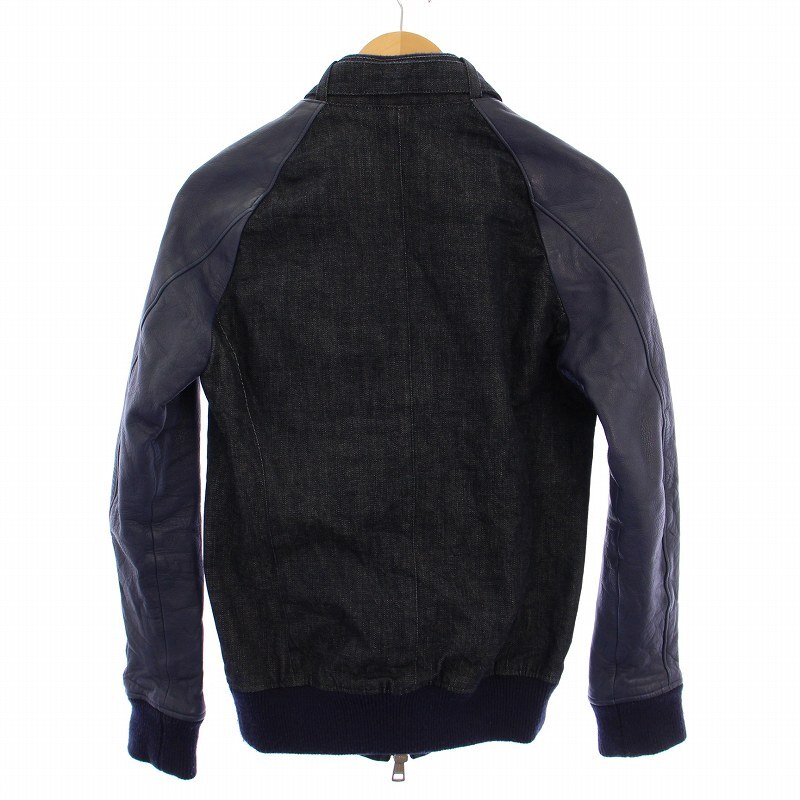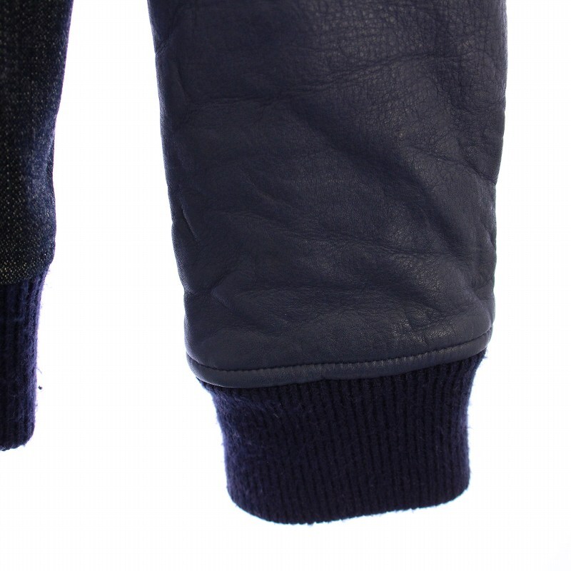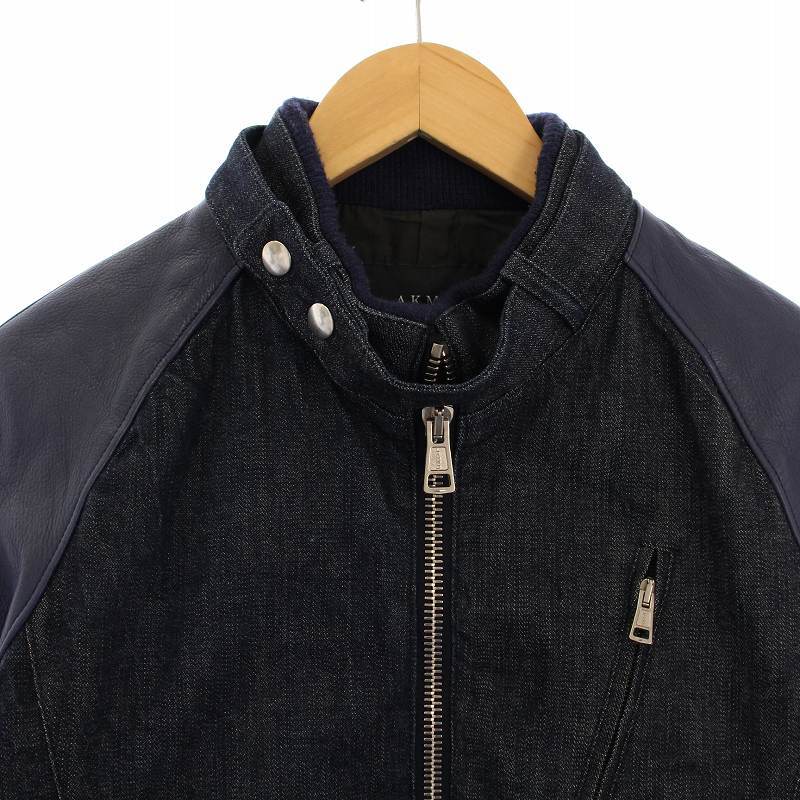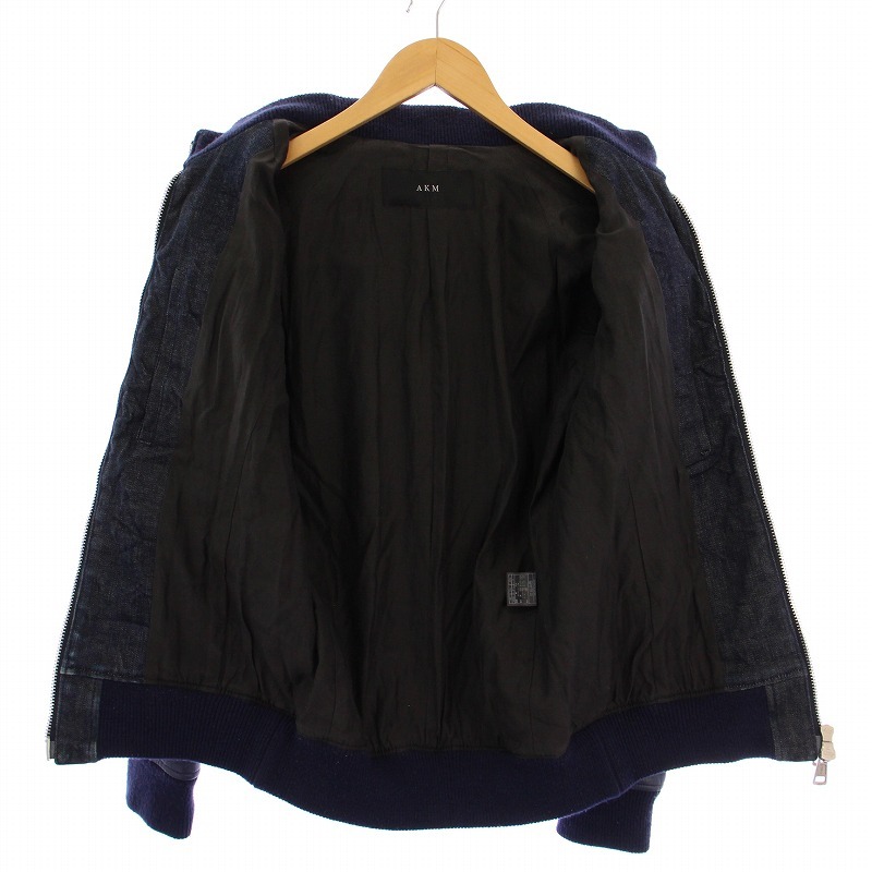 エーケーエム AKM デニムジャケット ジージャン Gジャン ジップアップ レザー切替 S ネイビー /BM メンズ