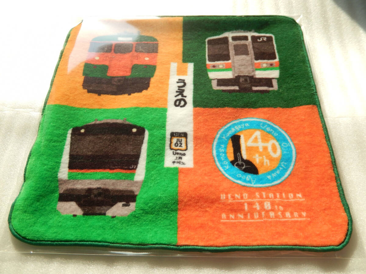上野駅開業140周年《 東北本線 211系 車両 デザイン ハンカチ 》☆★☆★☆★☆★☆★☆★☆ 鉄道 電車 グッズ 列車 ハンドタオル