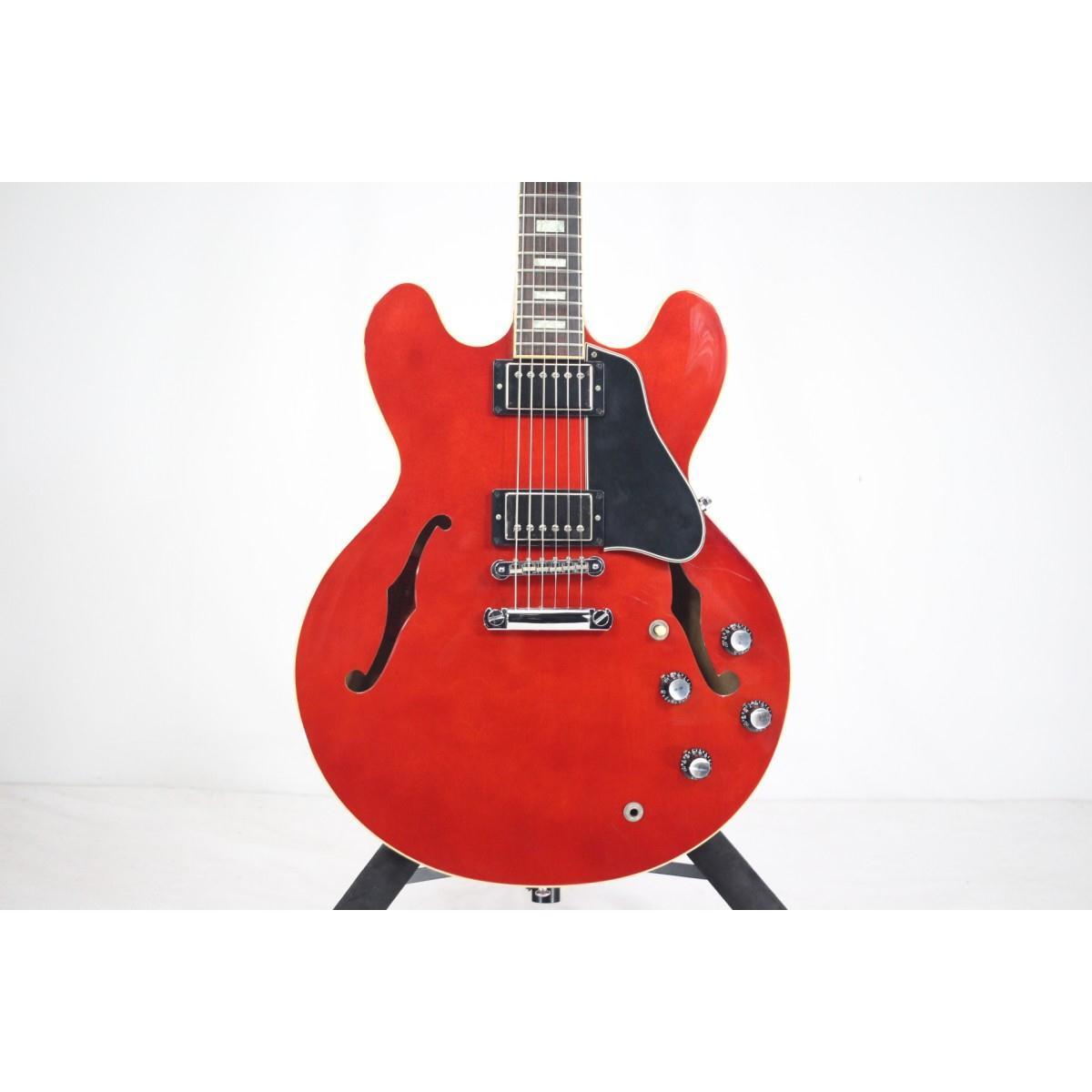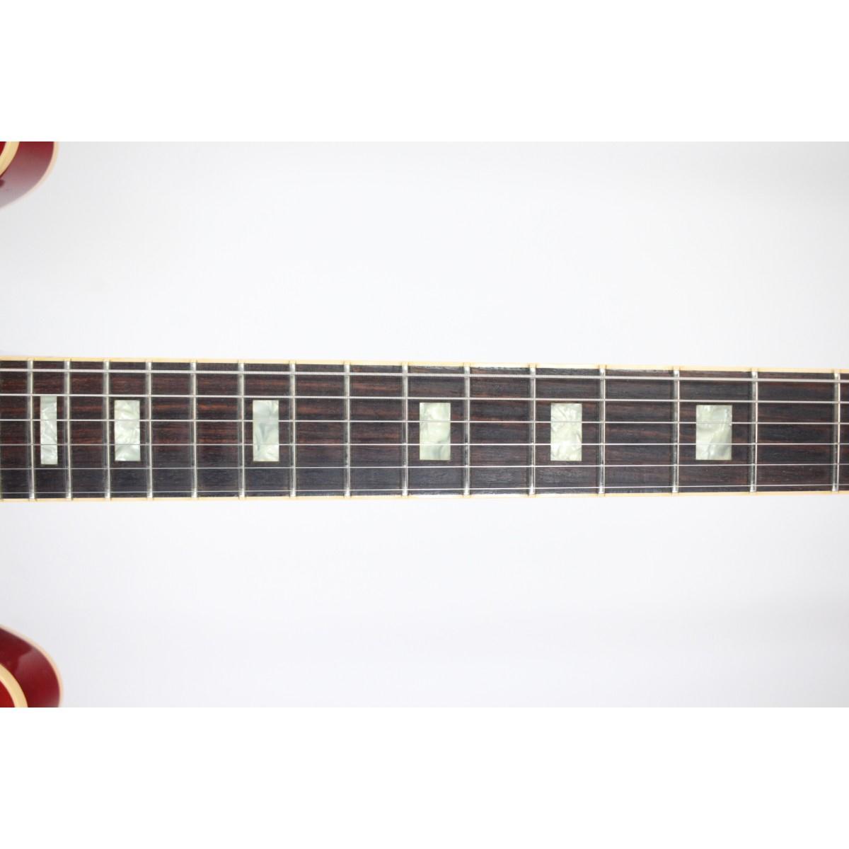 2003年製 当時の代理店であった山野楽器のオーダーによる、日本市場向けに発売されたES-335が入荷致しました!1963年モデルを彷彿とさせるグローバーペグ&ブロックポジション採用という個性的な一本。プレーントップにチェリーレッドカラーもヴィンテージ感を演出。かのギタリストが使用した Crossroads なルックスに近くなっています。ピックアップはバーストバッカー#1/#2を搭載。ハンダに交換歴がある為純正ではないと思われますが、結果的により1963スタイルに近づいており、バーストバッカーらしいPAF由来の太いサウンドが楽しめます。ジャズやブルースから、ハードロックまで、広く対応する人気モデルです!