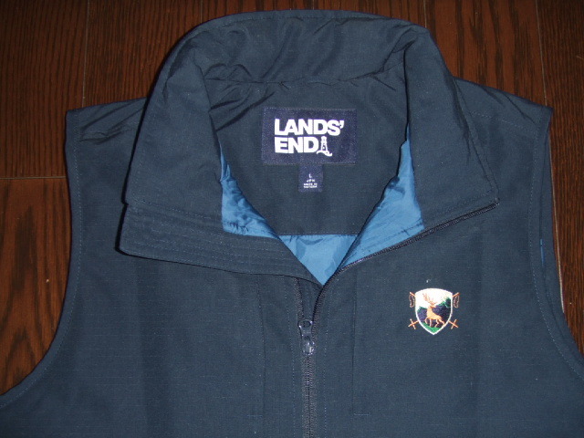 ★良品 LAND'S END ランズエンド / ジップベスト 刺繍 アウトドア ネイビー / L(肩幅40cm身幅54cm着丈68cm) ★