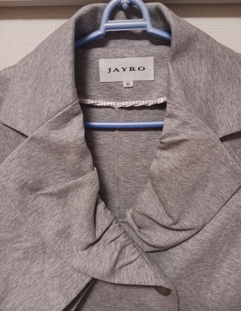 ダブルボタンとウエストベルト付きのグレーのスウェット素材ワンピースコート。