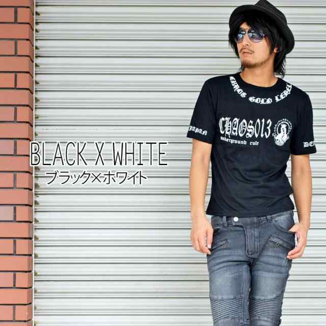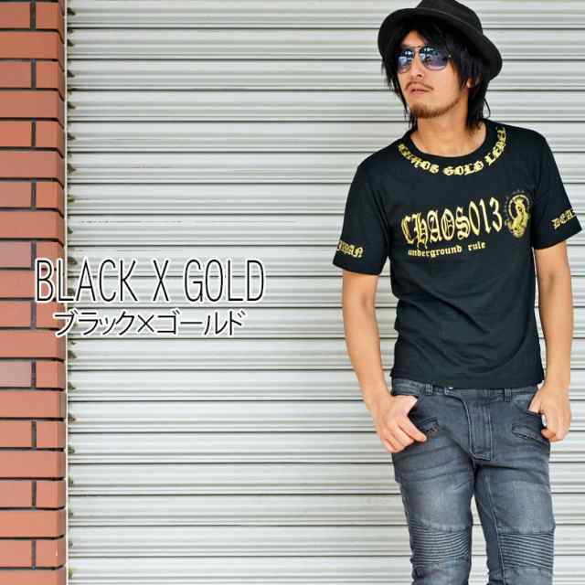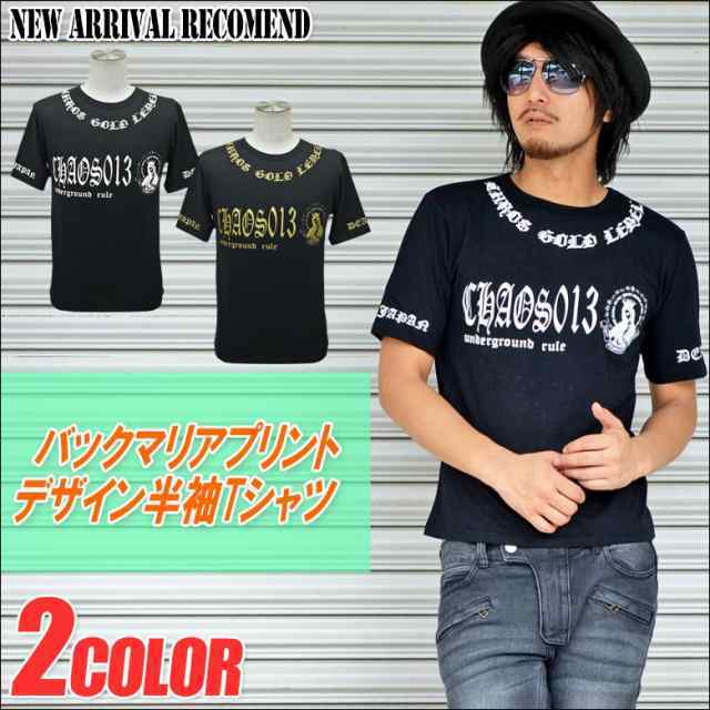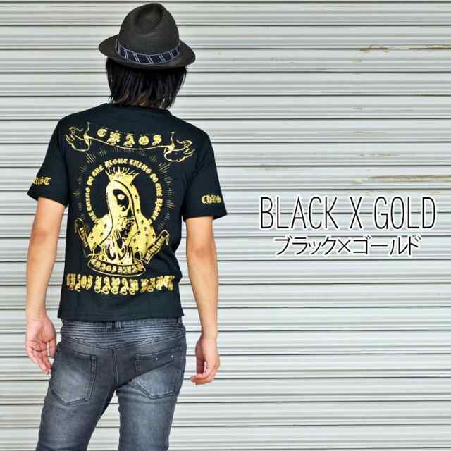 CHAOS JAPAN ロゴプリバックマリアプリント 半袖Tシャツ オラオラ ch-ry-0006 新品ブラックxゴールド M