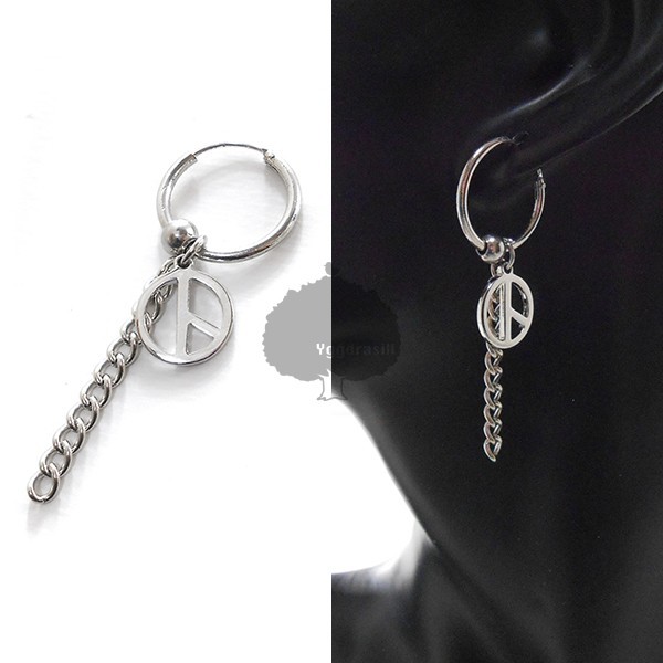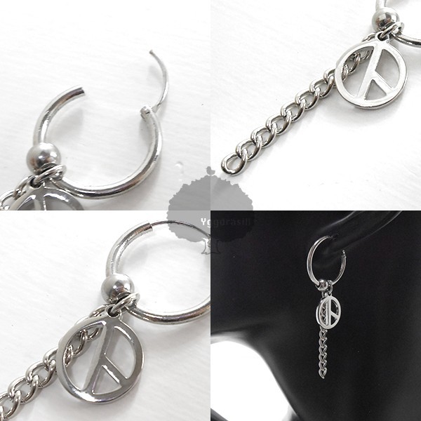 YGG★新品 GDモチーフ ワンボール×チェーン付き フープピアス 銀色 シルバー メッキ 片耳 g-dragon着 1個 片耳