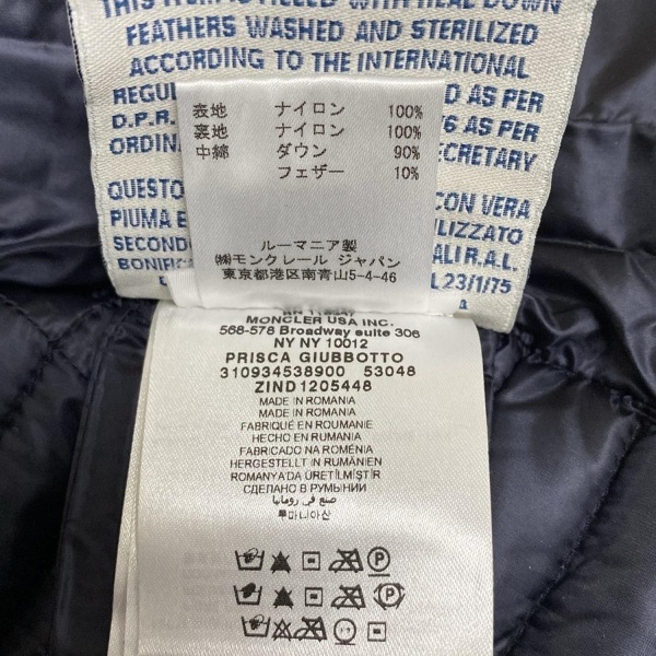 モンクレール MONCLER ダウンジャケット サイズ00 XS PRISCA(プリスカ) ネイビー レディース 長袖/秋/冬 美品 ジャケット