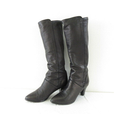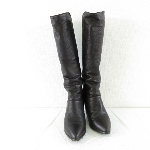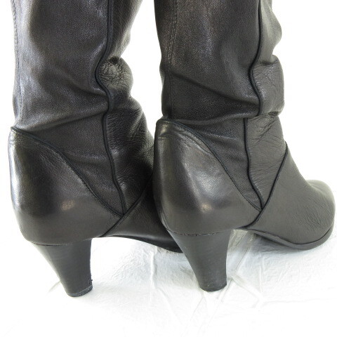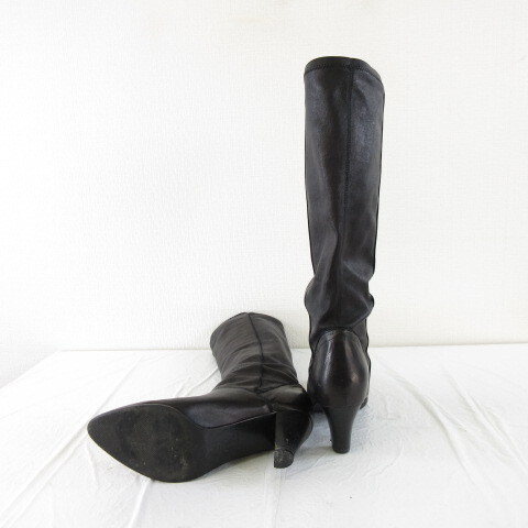 コムサデモード COMME CA DU MODE レザーブーツ ロング ハイヒール7cm 黒 L *A955 レディース