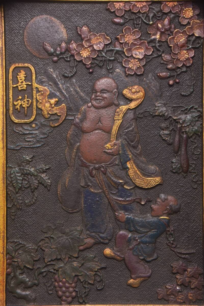 旧蔵 清 【彌勒】漆器 額をかける 極細工 中国古玩 古美術 骨董品 204-07