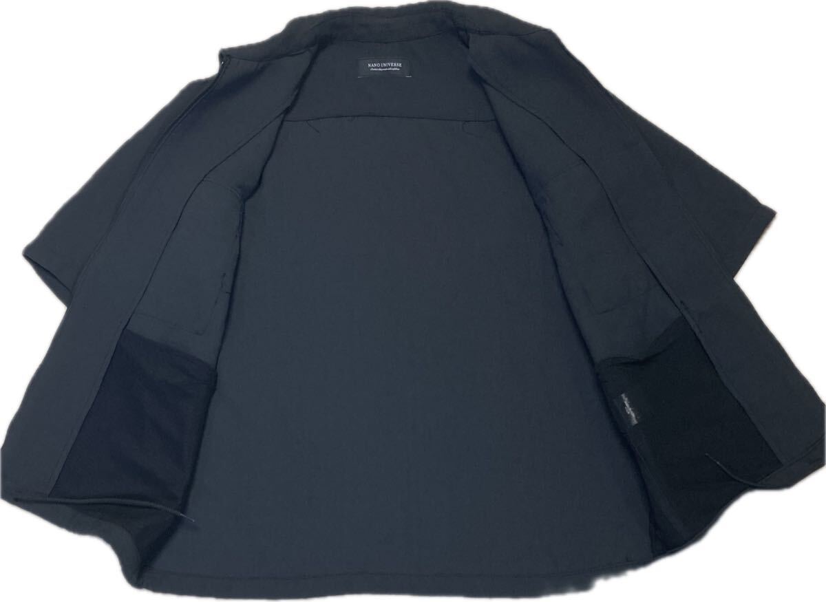 新同★ナノユニバース♂ポリエステルフルジップ半袖シャツジャケット★チャコールグレー