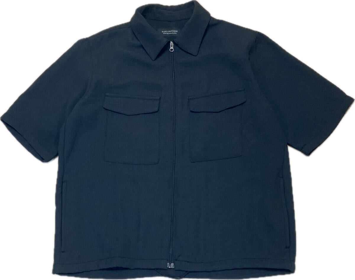 新同★ナノユニバース♂ポリエステルフルジップ半袖シャツジャケット★チャコールグレー