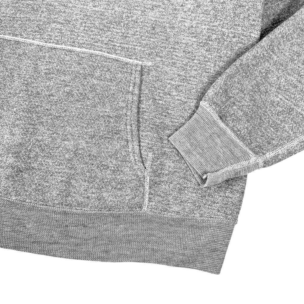 肉厚感のある裏起毛で、コットン含有率高め、程よい厚みがあり60s寄りのディテール。