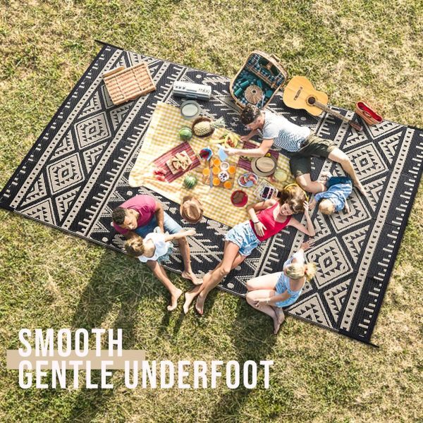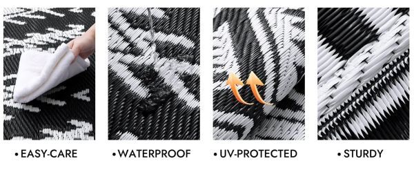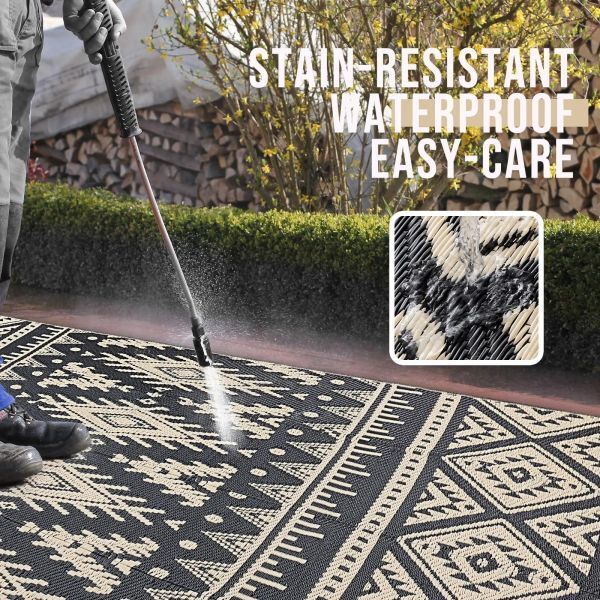 • リバーシブル & 多用途: 両面にモダンな幾何学模様のリバーシブルデザイン。パティオ、RV、ポーチ、デッキ、裏庭、キャンピングカー、バルコニー、ピクニックなどを瞬時にリフレッシュしてください