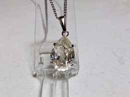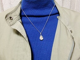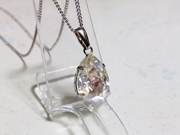 サイズ | サイズ:★トップの大きさは、16×10ミリです。 ★クリスタルムーンライト・ スワロフスキー 1石の大きさは、14×10ミリです。 ★チェーンは、ロジウムメッキの 喜平45cmを使用。 |