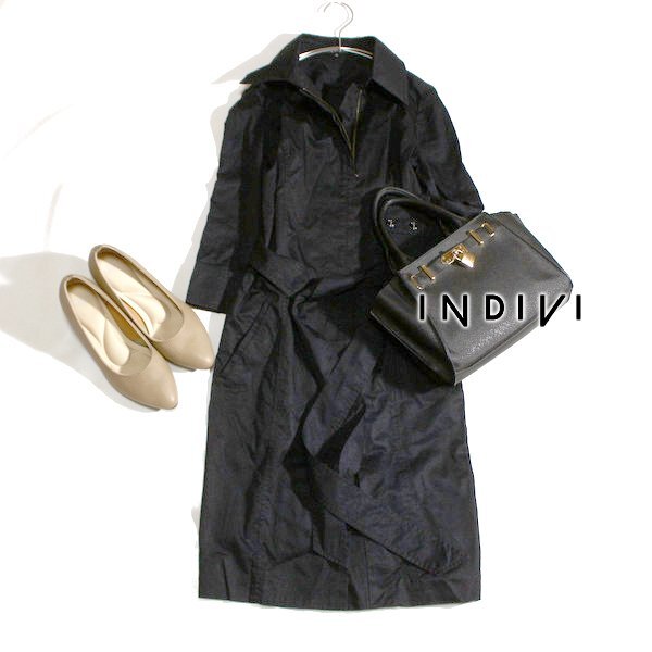 美品 INDIVI インディヴィ コットン100% ベルト付き ワンピース 38号 M 春 秋 25B04
