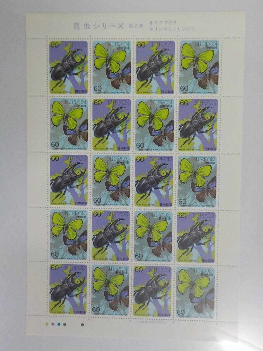 昆虫シリーズ 第2集 1986年 オオクワガタ キリシマミドリシジミ / 60円切手シート 未使用