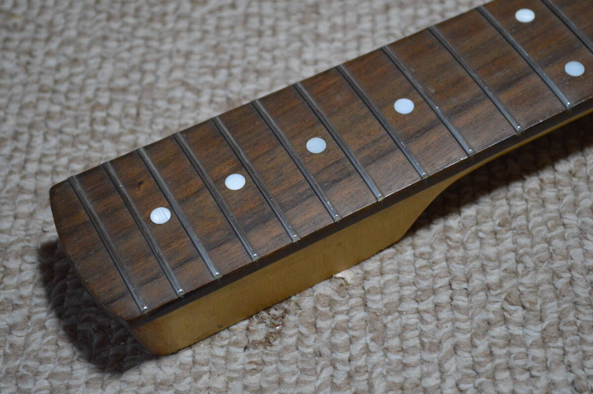 目視確認ではありますがネックはほぼフラット、フレットは若干減っている感じです。