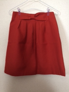 ◆超美品◆【ROPE' PICNIC】 ロペピクニック 柿色 ウエストリボン付き 台形スカート 膝丈