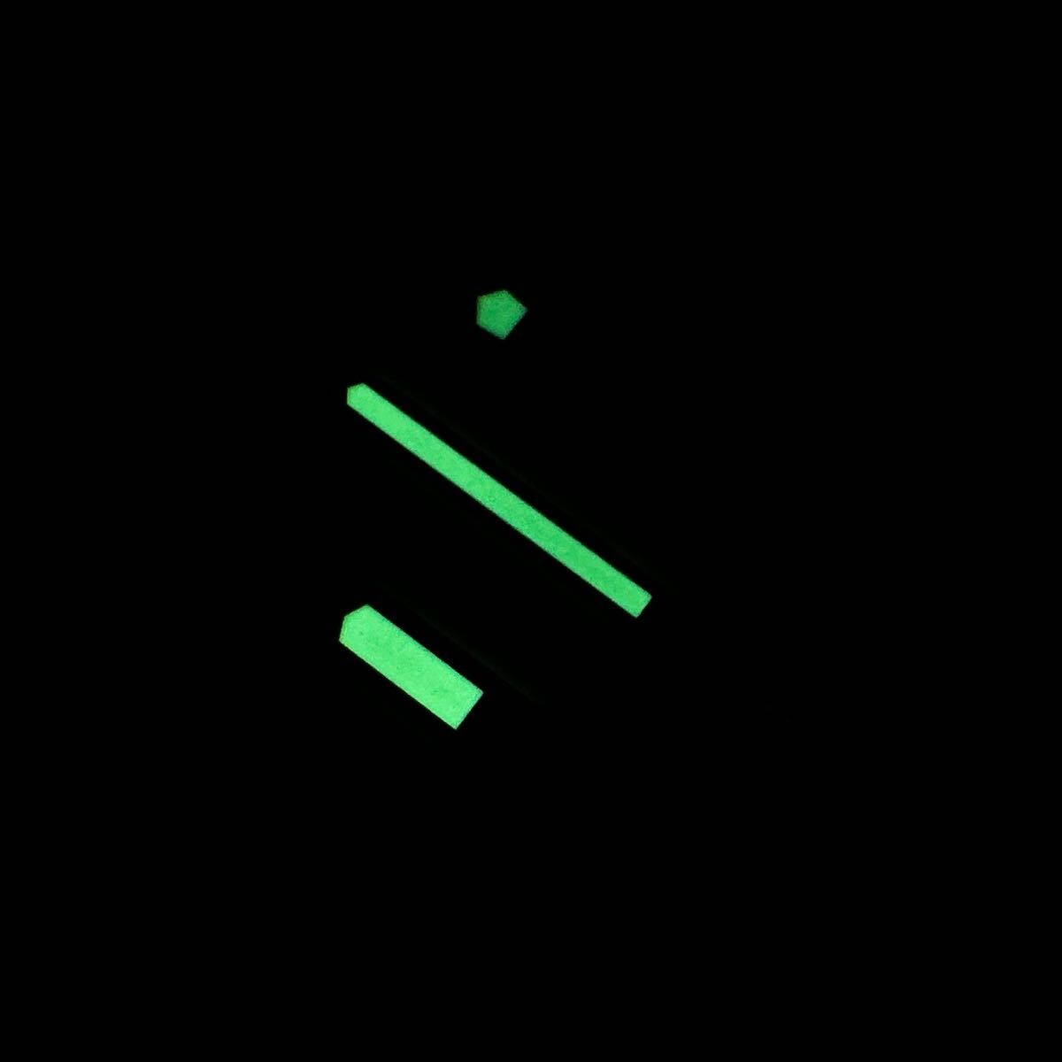 社外品の針は製造工程上、夜光部の脱落を防止する接着剤が針の横面に僅かにはみ出している物が殆どです。