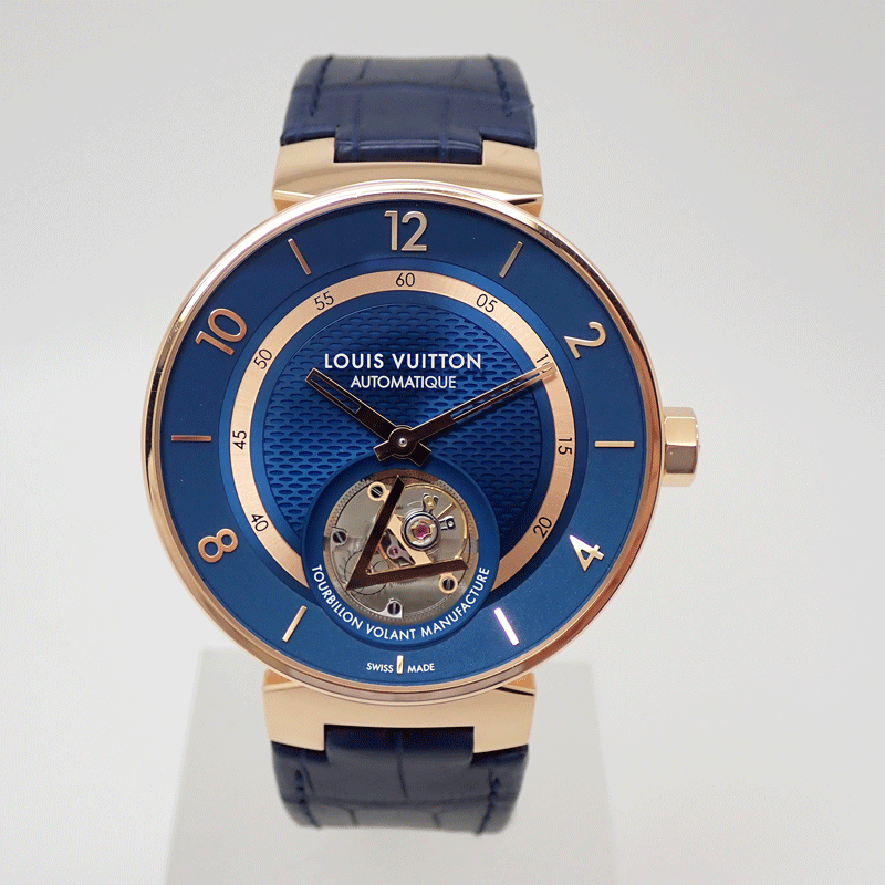 商品名 LOUIS VUITTON タンブール タンブール ムーン フライングトゥールビヨン ブルー QA0431 750 K18PG 自動巻 中古美品 送料無料!!