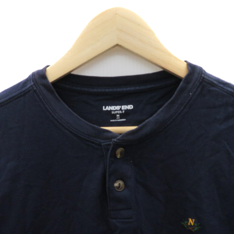 ランズエンド LANDS' END カットソー 半袖 ヘンリーネック M 紺 ネイビー /YK27 メンズ