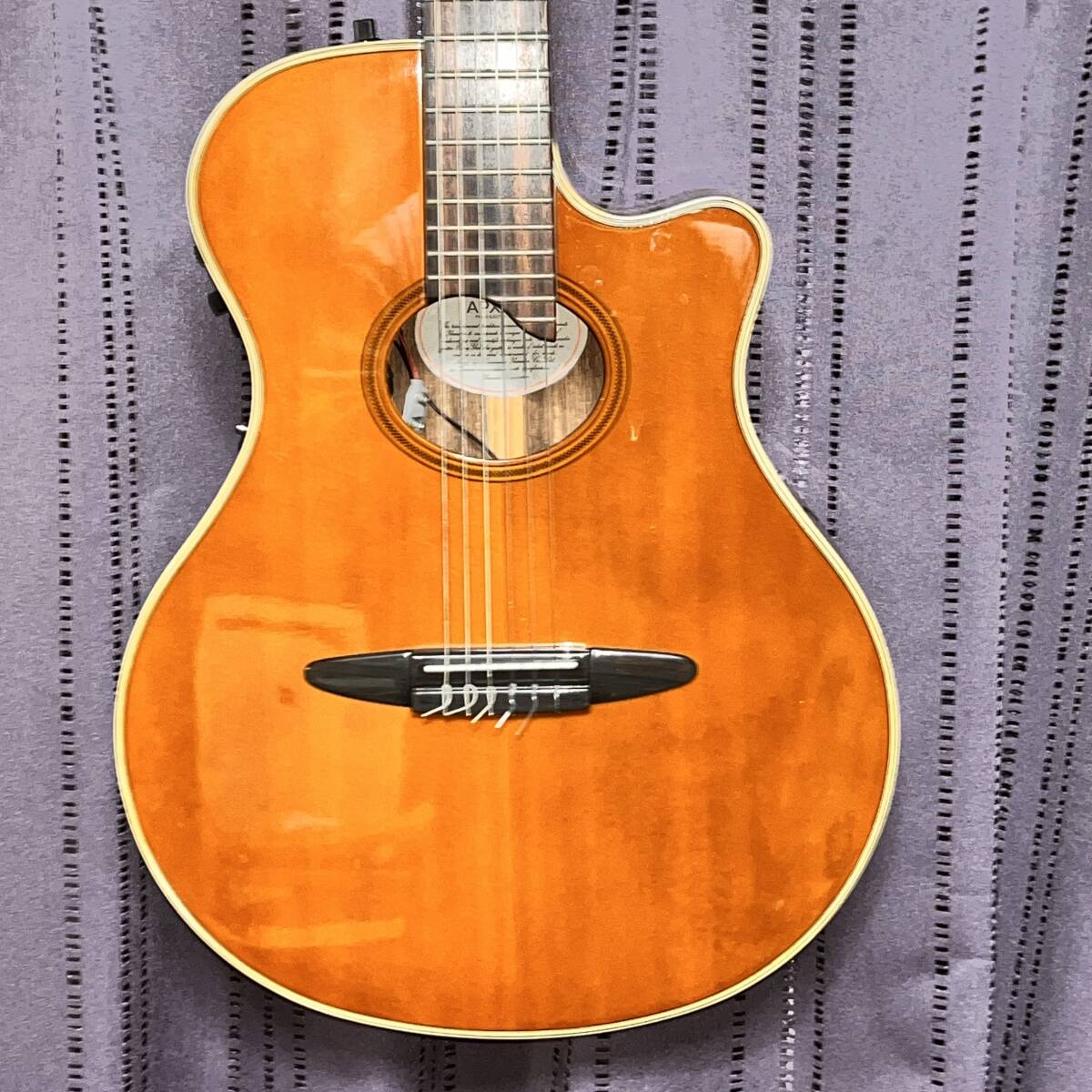 エレキギターからそのまま持ち替えても違和感なく弾けるほどの抜群の演奏性に定評のあるYAMAHAのAPXシリーズ、ナイロン弦仕様の最高峰、 YAMAHA APX-10Nです。