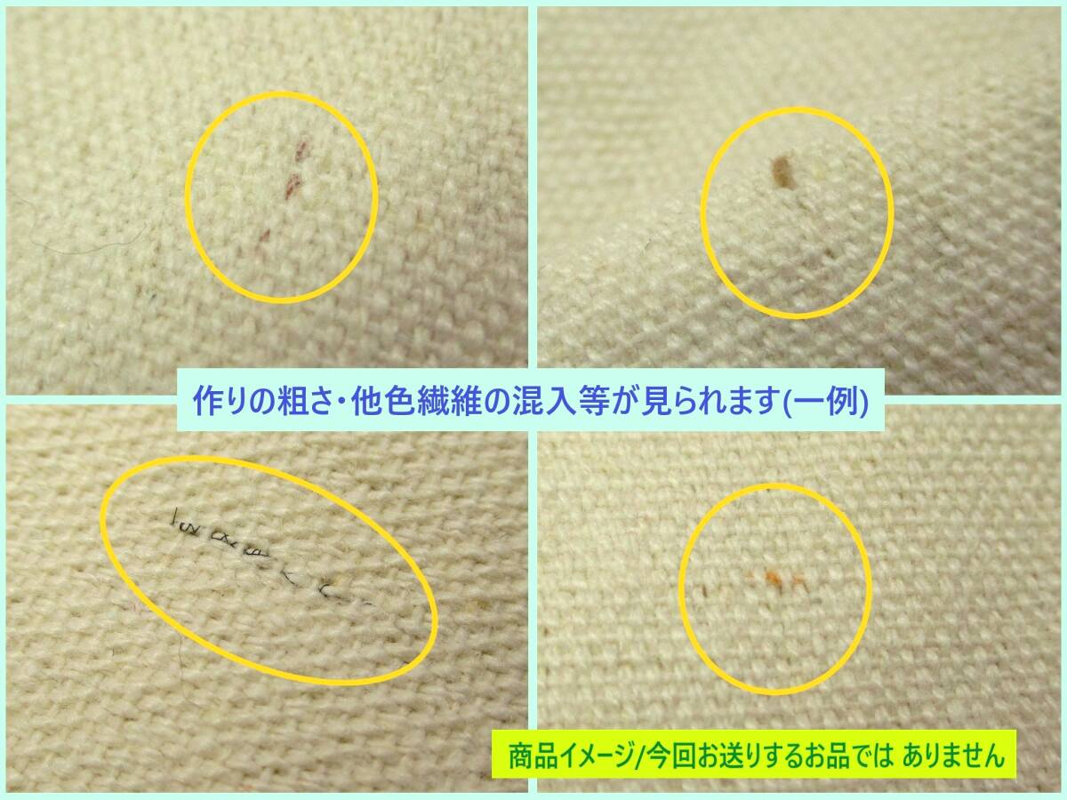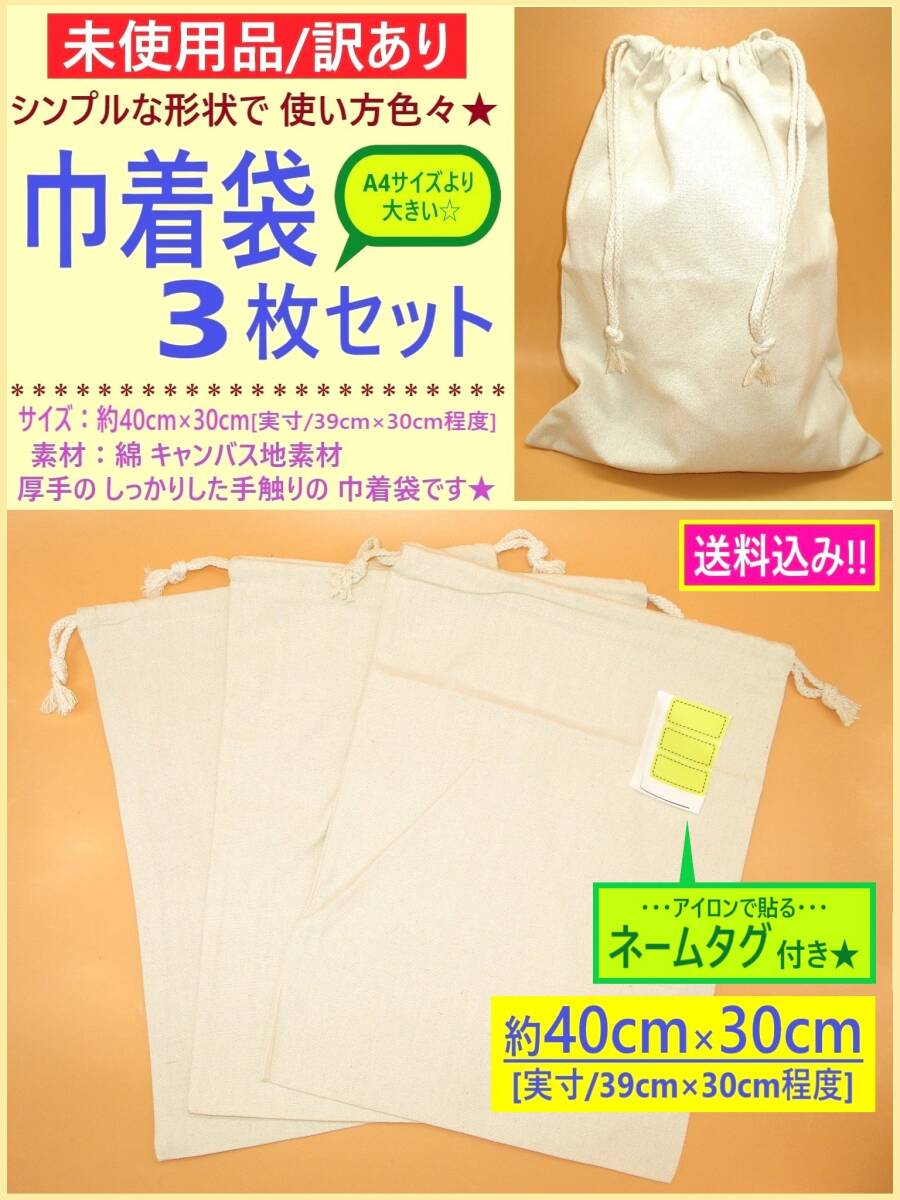| 「訳あり」扱いの 未使用品です。 専用のパッケージ等の外装は ありません。 キャンバス地素材で出来た 厚手で しっかりした手触りの 巾着袋 3枚セット商品です。 A4サイズ封筒が入る 大きめサイズなので 日常の衣類などの小物から 旅行・アウトドア用品の収納 ハンドメイドの素材 またラッピング袋として 他 様々な用途にお使いいただけるかと思います。 アイロンで貼る「ネームタグ」3枚を一緒に お届けします。 基本的なお色は 無地・アイボリー系ですが 生地の所々に 他色繊維の混入が見られます。 また 生地の処理等 作りの粗さが見られます。 *ご使用には差し支えはないと思われます この点より「訳あり」として出品いたします。 以下の商品説明をよくご覧になってから、 ご検討をお願い致します。 神経質な方、完品をご希望の方は、 御入札をご遠慮ください。 【商品内容】 無地 シンプルデザインの 巾着袋 同じ仕様の物 3枚セット《ネームタグ付属》 [基本的な仕様] *個々のお品で 多少の差異があります サイズ:約40cm×30cm (実寸/39cm×30cm程度) 重量:1枚あたり 約90g 素材:綿 キャンバス地素材 その他: ・海外製/メーカー等の詳細は 不明 ・厚手で しっかりした手触り *柔らかくなく ゴワゴワ系の手触りです(主観) ・「アイロンで貼る ネームタグ」3枚付属 *未テストのため 耐久性は不明 (参考:画像8) *状態などは画像にてご確認ください *実際の商品の色味とは異なる場合があります *画像1(TOP)~8には 過去の出品画像を流用しています 画像9・10は 今回実際にお送りするお品を撮影しています ご了承下さい 【状態等】 ・未使用品です。 ・専用のパッケージ等の外装は、ありません。 ・海外製につき、 作りや縫製に粗さがある場合があります。 美品・完品をご希望の方はご遠慮ください。 ・長期保存品につき、 汚れ・埃の付着等がある場合がありますが、 御容赦下さい。 ・商品は簡易的なチェックのみと させていただいております。 その為、汚れなどの不備を 見落としている可能性があります。 以上の点より 「訳あり」として出品いたします。 ご承知をいただける方のみ、 ノークレーム・ノーリターンにて、 ご検討下さい。 【補足】 長期保存品、及び、 ゆうパケットにて発送できるサイズに 折りたたんでいるため、 シワ・折れ目が見られます。 画像にてご確認ください。 (発送時の状態/画像10) | ||