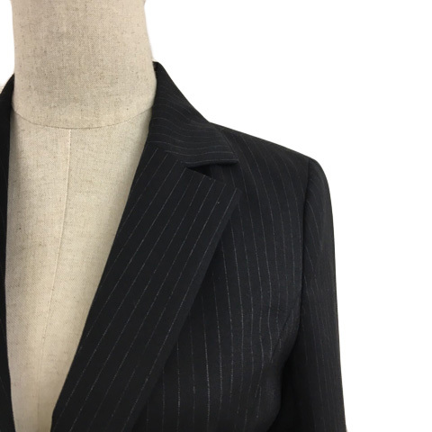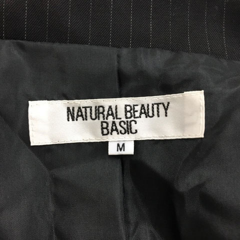 ナチュラルビューティーベーシック セットアップ ジャケット テーラード パンツ ストレート ロング ウール ストライプ M 黒 グレー