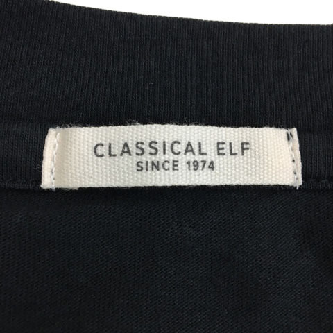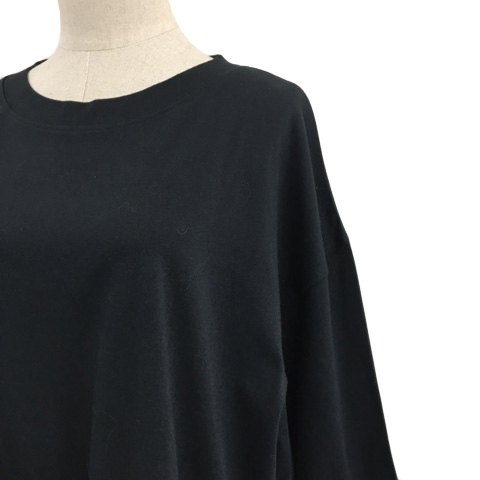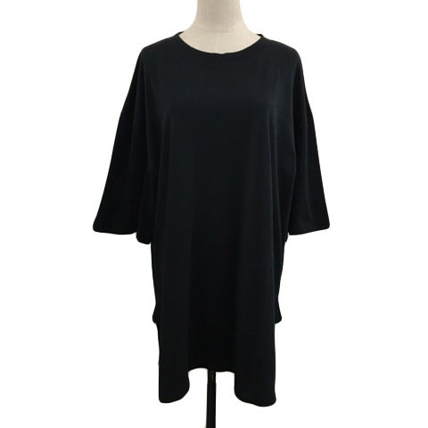 クラシカルエルフ カットソー Tシャツ プルオーバー ラウンドネック スリット オーバーサイズ 無地 五分袖 LLー3L 黒 ブラック レディース
