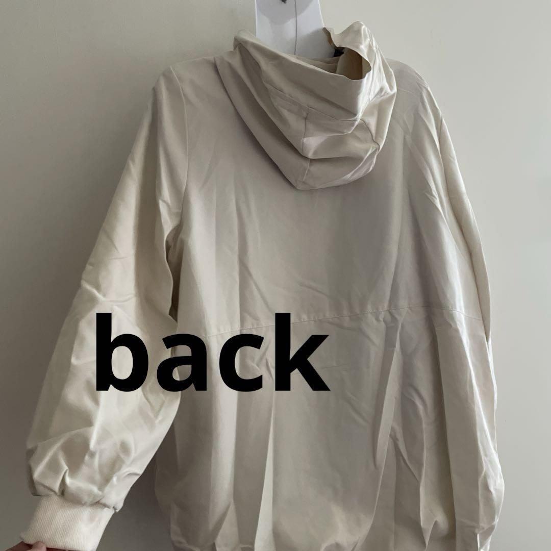 ◎シンプルですが、 スタイリッシュなデザインが特徴です。 ◎フード付きで、天候に応じた調整が可能。 袖口はリブ仕様で、風の侵入を防ぎます。 ◎後ろが少し前より丈が長く 下の部分が少しふんわりしていて デザインが可愛いです* ◎完全にシャカシャカの生地ではないので スポーツぽく感はありませんが カジュアルでオシャレです。 ■カラー・・・アイボリー