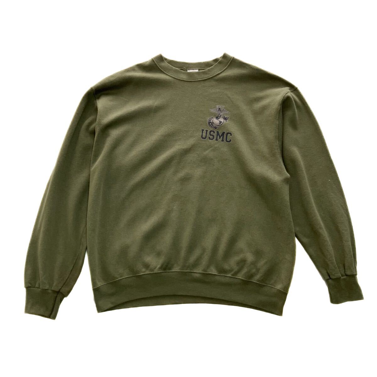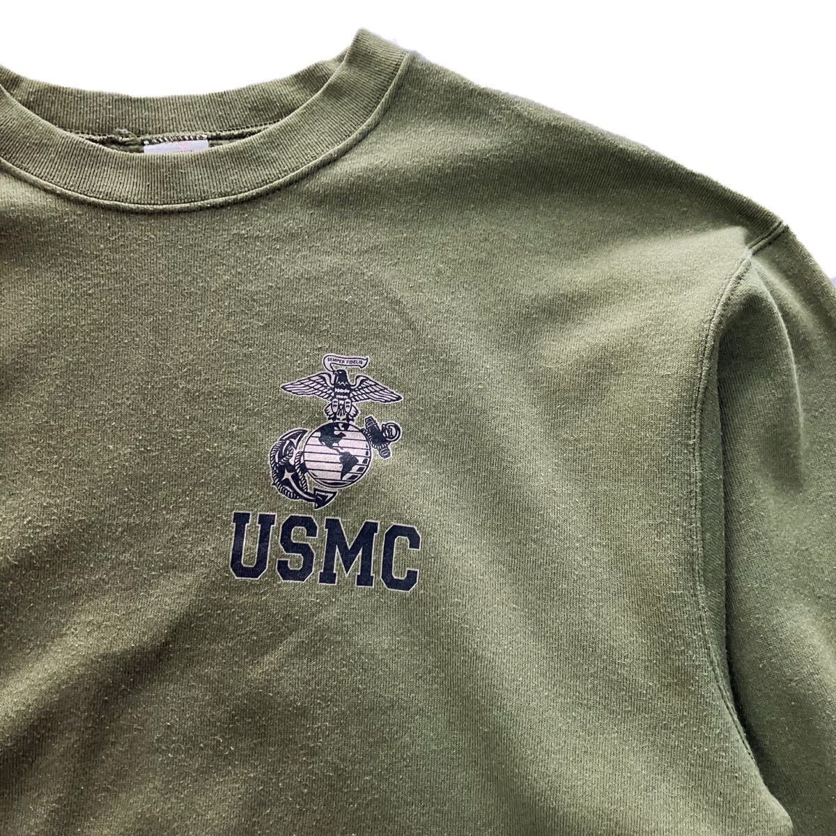 米軍 海兵隊 USMC プリント ミリタリー スウェット Vガゼット M トレーナー カーキ