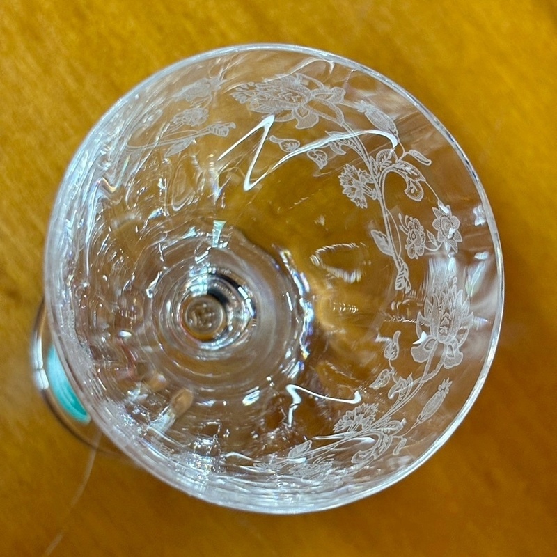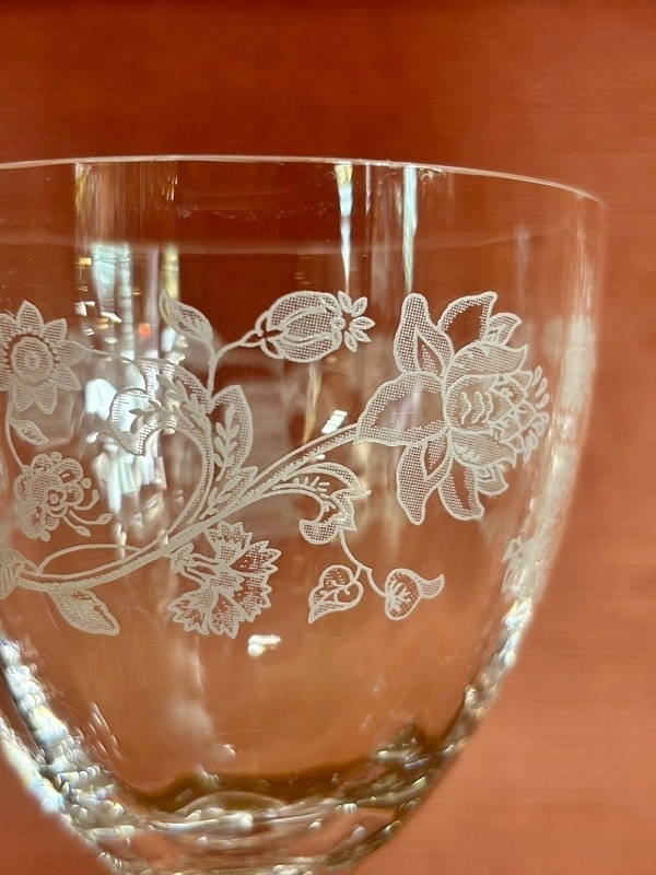 美しい花柄の透かし彫りが施されたクリスタル製のグラスです。