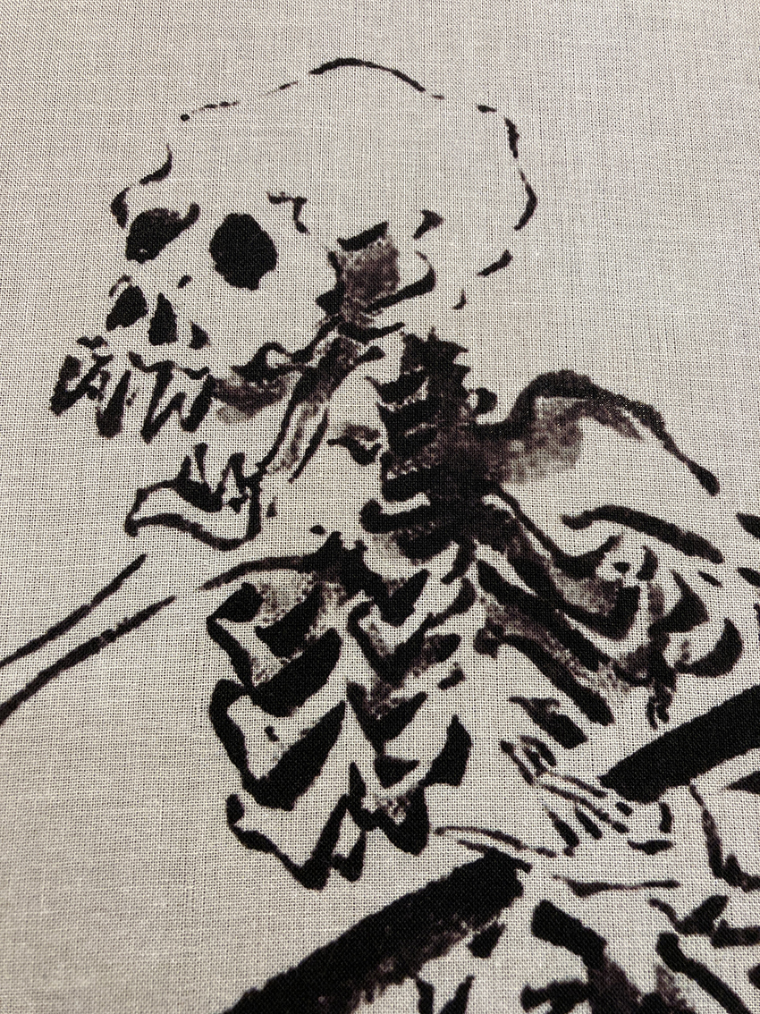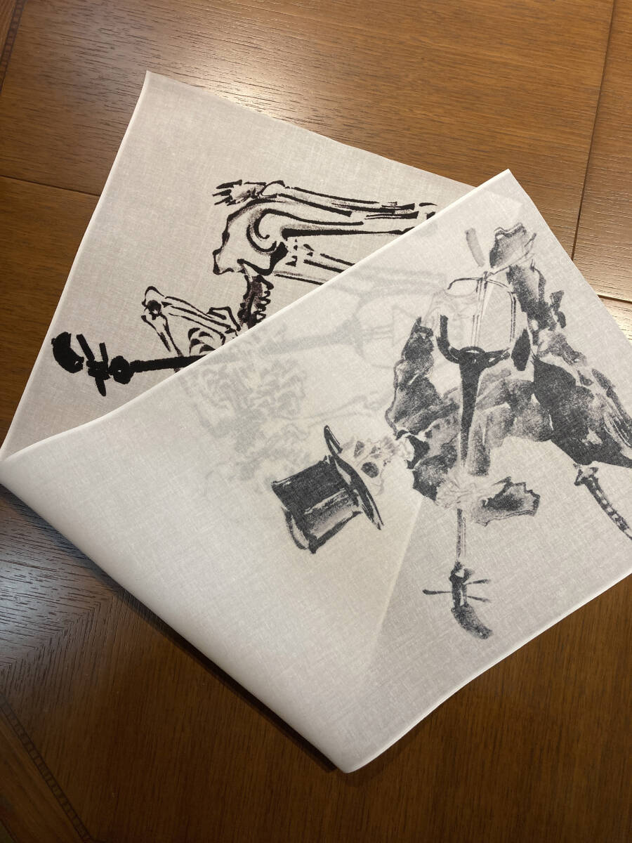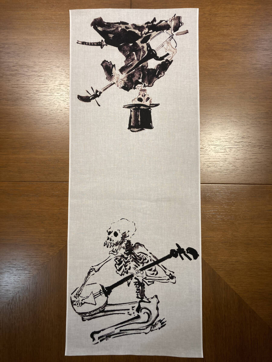 古今東西 浮世絵 手ぬぐい 河鍋暁斎 二人の三味線を弾くドクロ その1 サイズは約90cm 35cm 手拭い ハンカチ タオル ギター