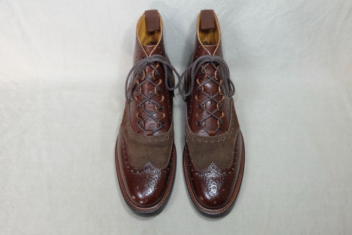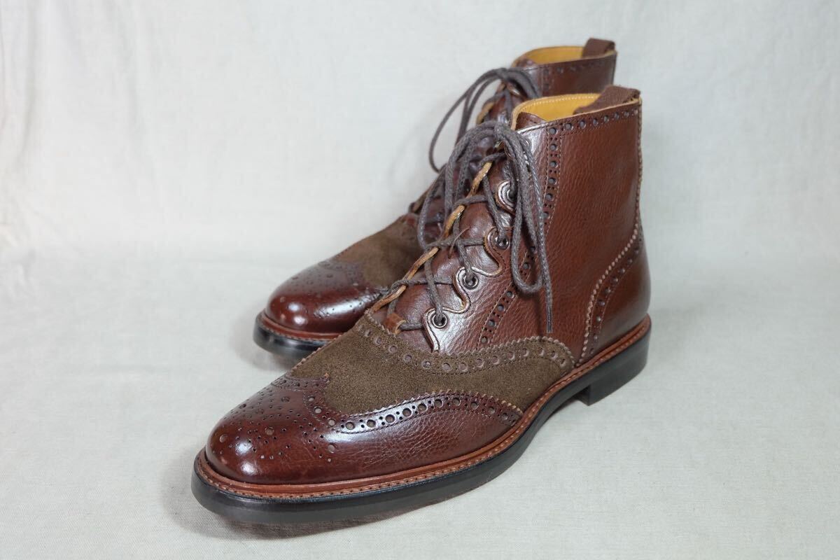 時価10万円以上 希少名品 数回着 三陽山長 英介 美しいグレインカーフレザー使用 洗練されたコンビギリーブーツ UK8.5 Goodyear welted製法 日本製高級手製革靴 vibramソール ハンドメイドシューズ ダブルソール メンテナンス&クリーニング済 | |||