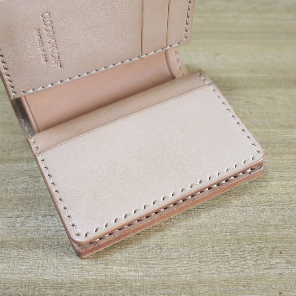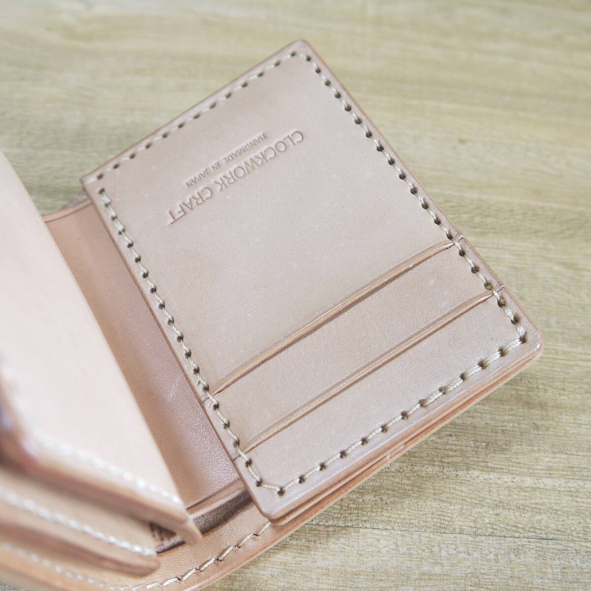 エイジングが楽しめる生成りのヌメ革を使用しています。経年とともにキャメル色に変化し、革本来の風合いが増していきます。