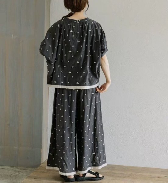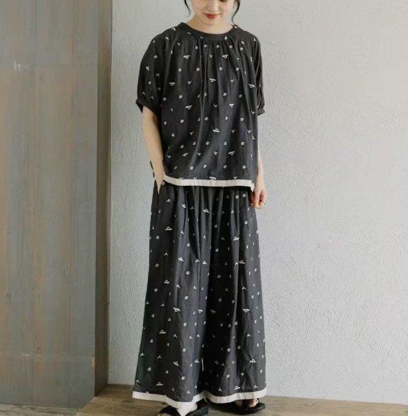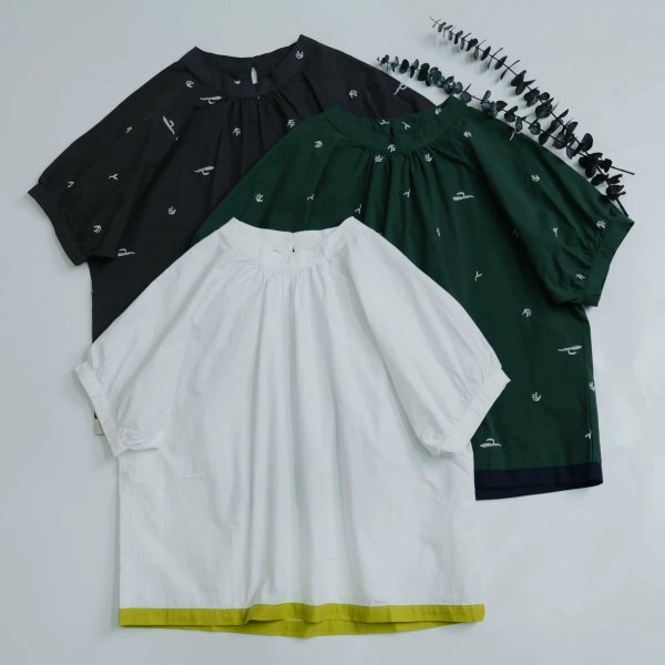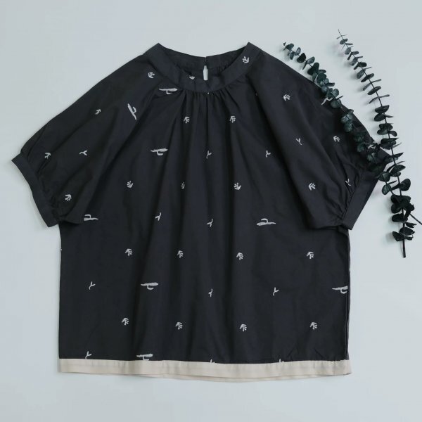 ns 刺柄 チュニック ワイシャツ トップス 綿100% ゆったり オシャレ フリーサイズ ナチュラル 黒灰色