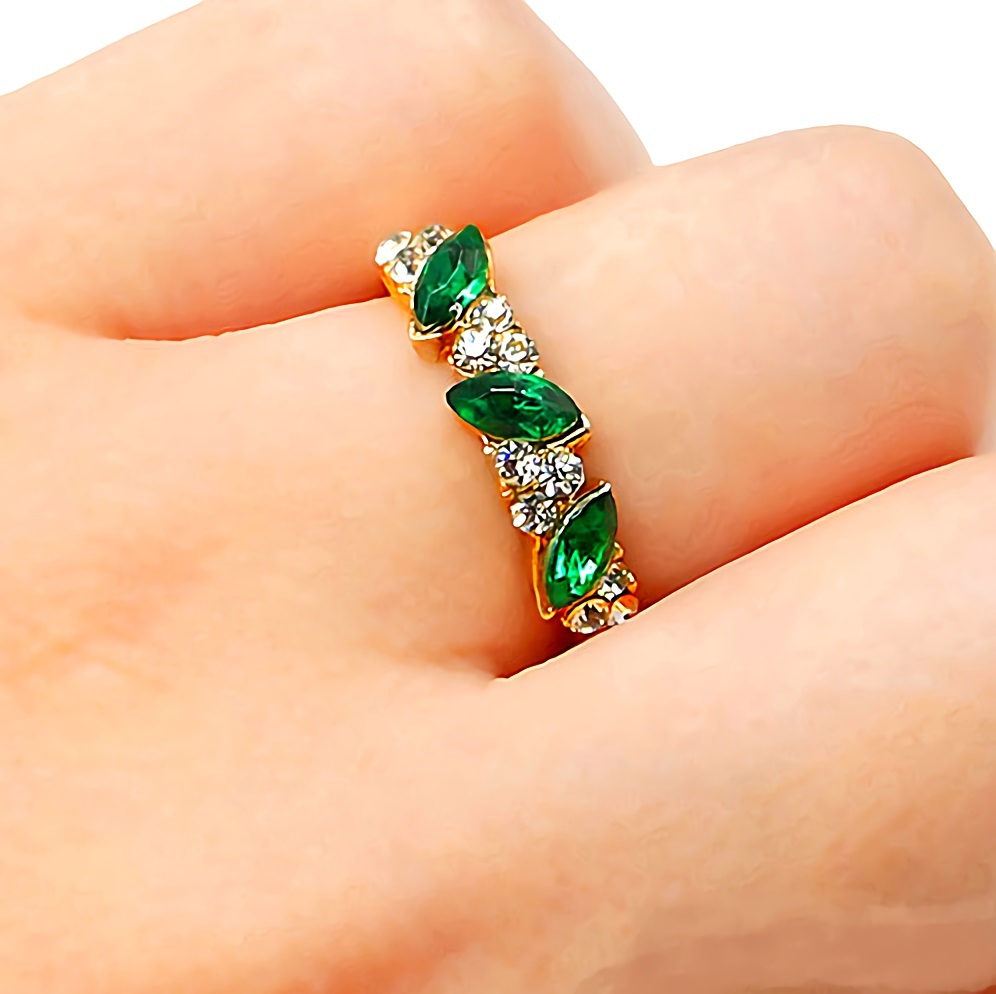 新品1円~★送料無料★深緑エメラルド翠玉マーキズカット ダイヤモンド K18GFゴールドリング 誕生日プレゼント旅行秋祭連休ギフト国内発送