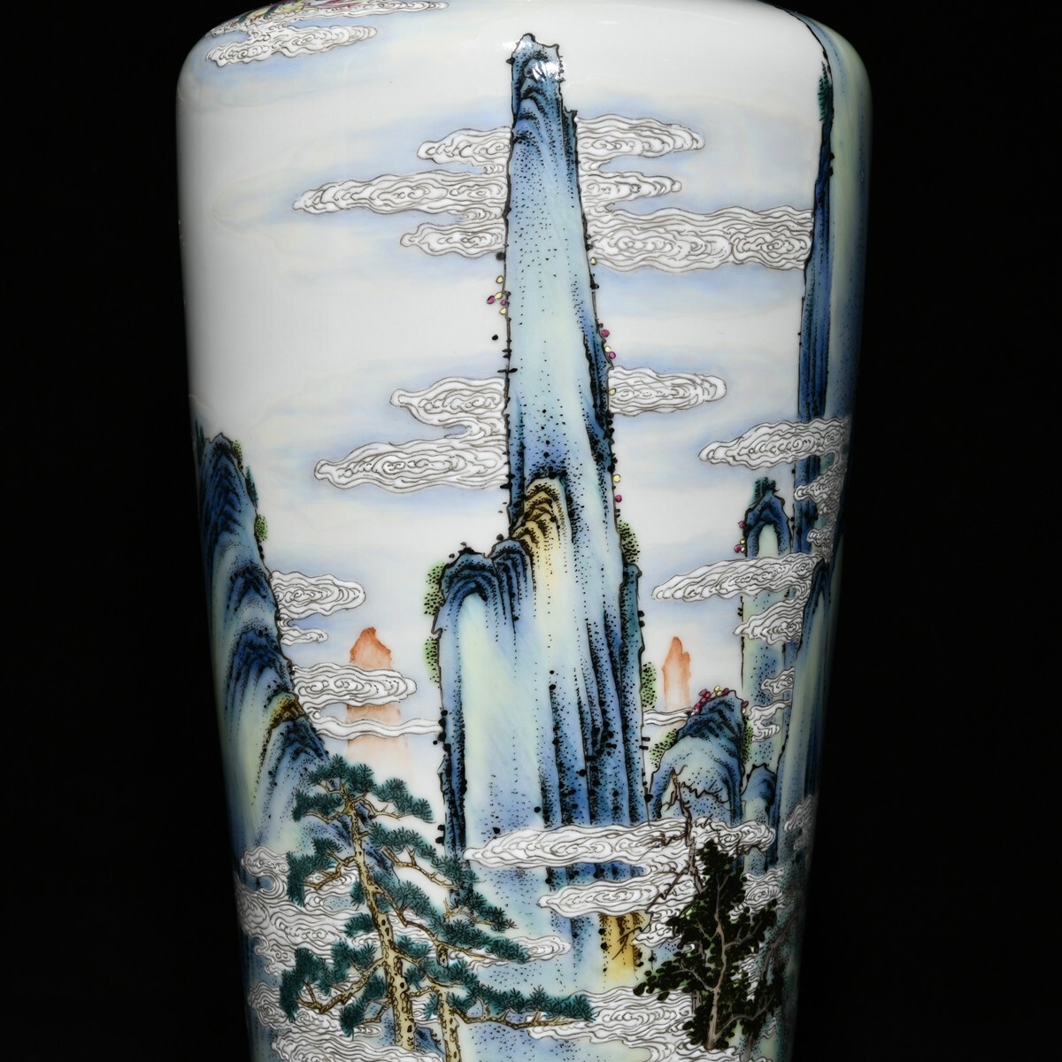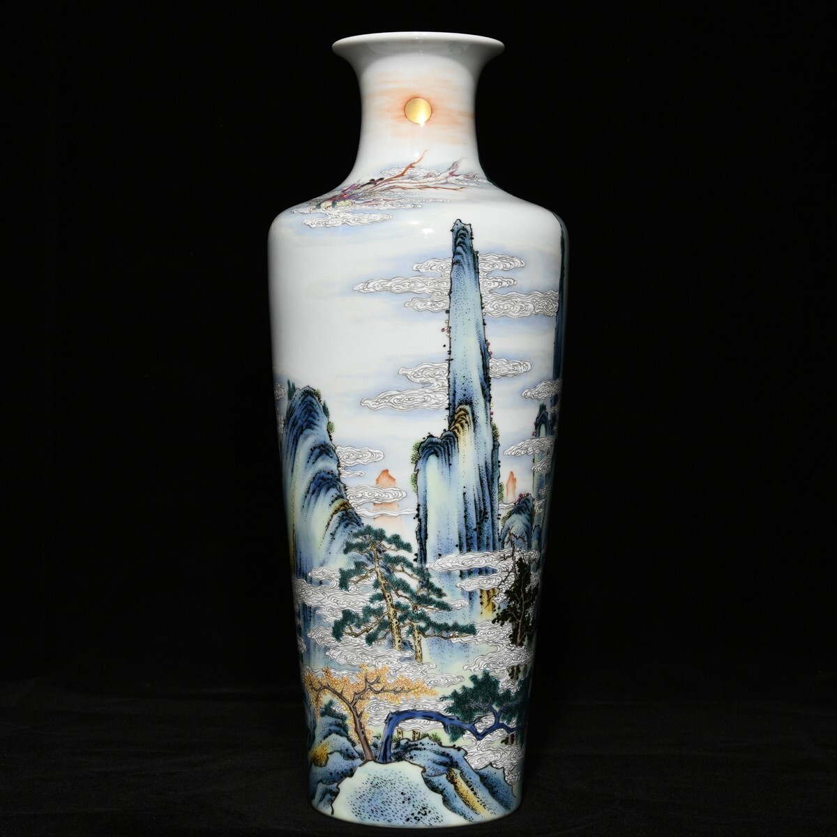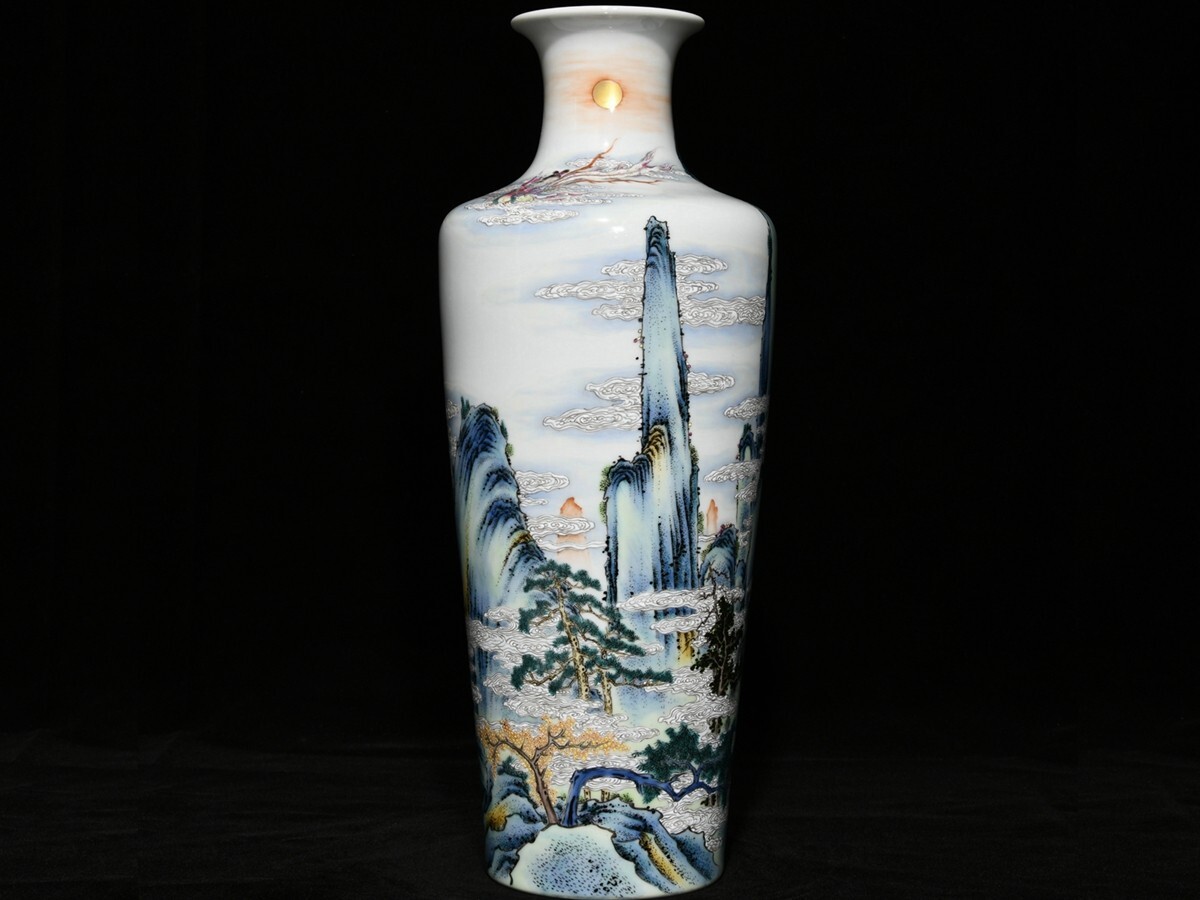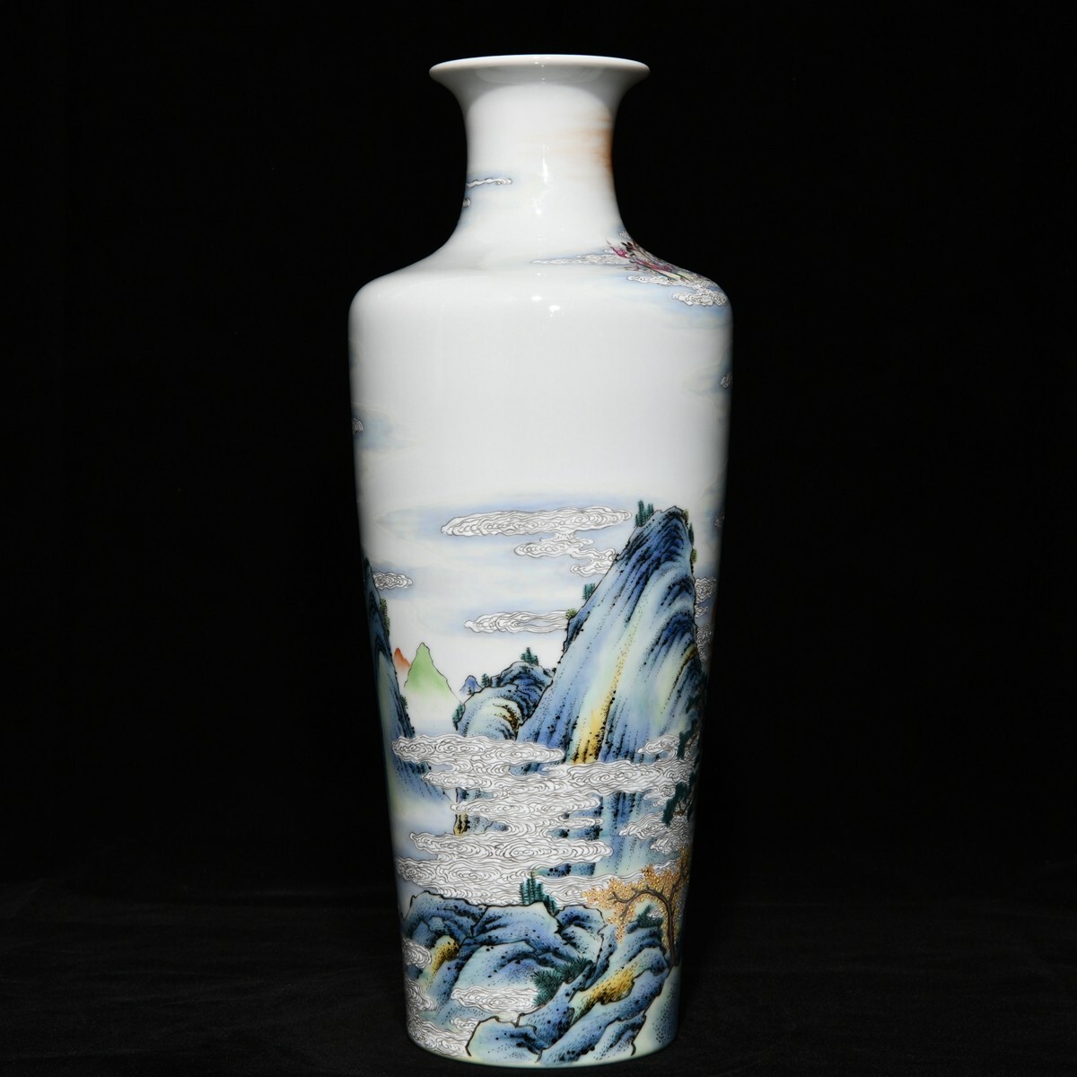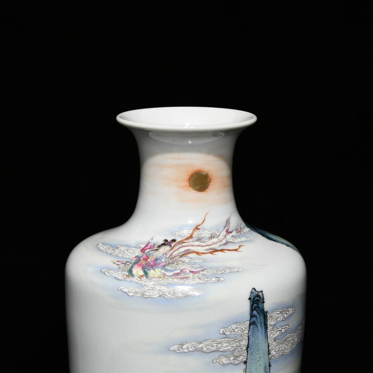「清 雍正年製 陶磁器 粉彩仙女山水瓶」染付 置物 擺件 古賞物 中国古美術 旧蔵出
