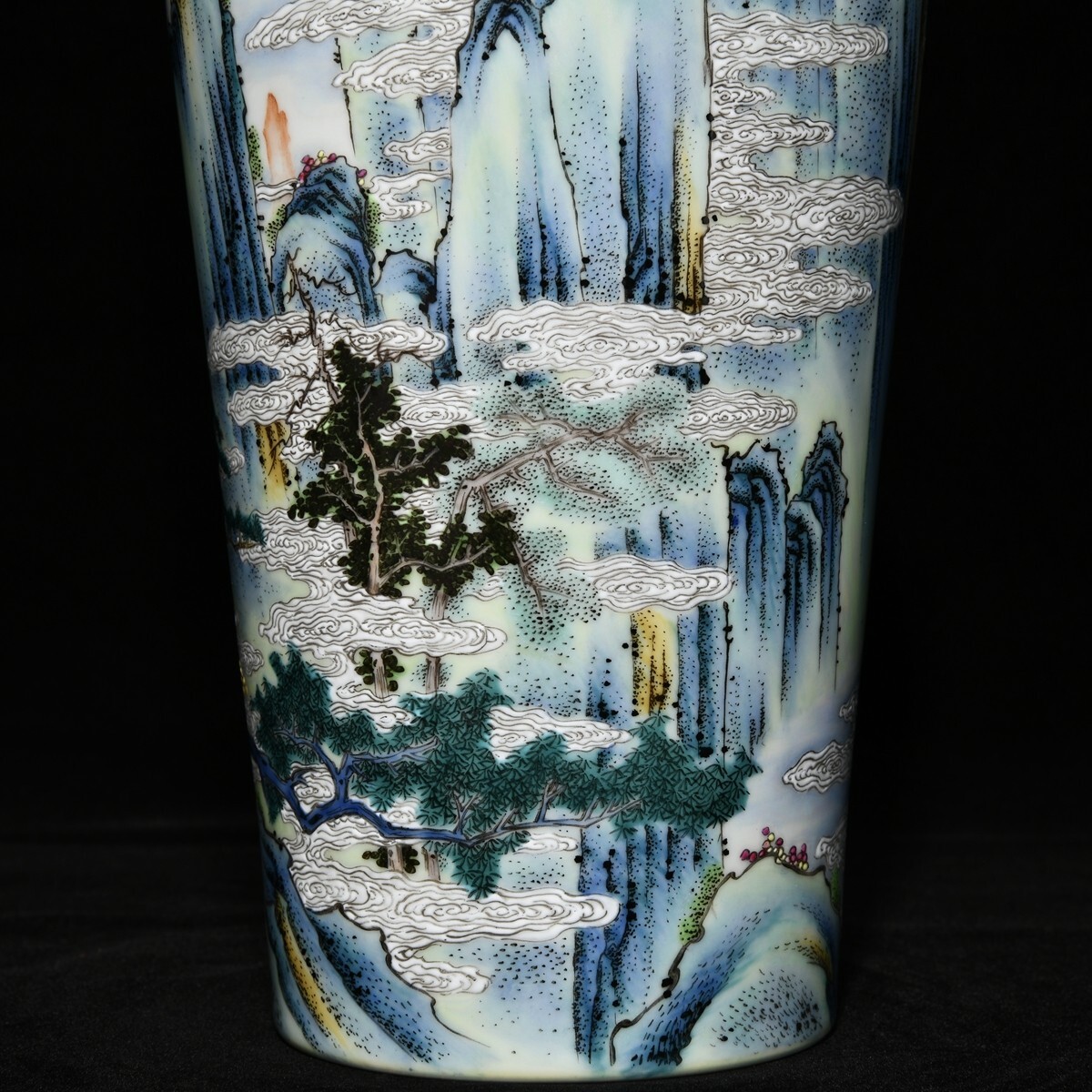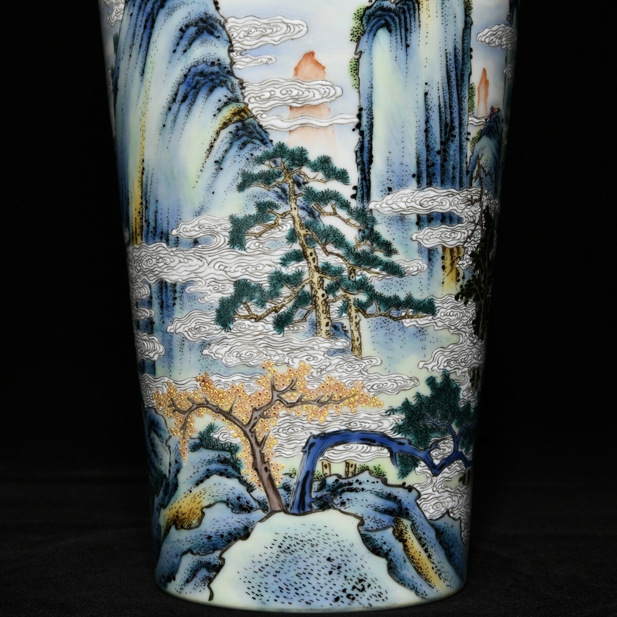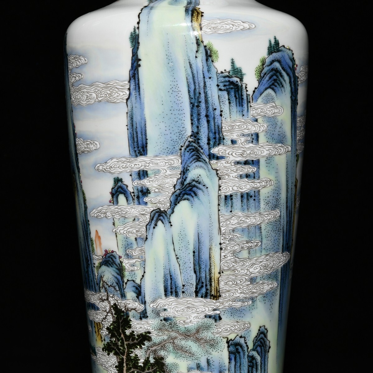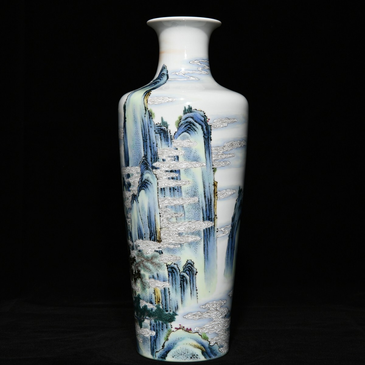 「清 雍正年製 陶磁器 粉彩仙女山水瓶」染付 置物 擺件 古賞物 中国古美術 旧蔵出