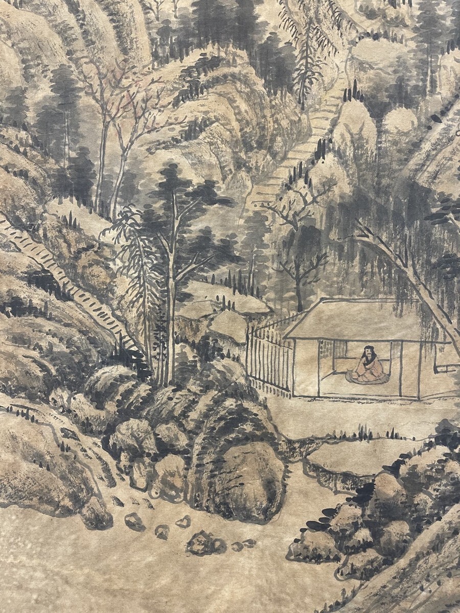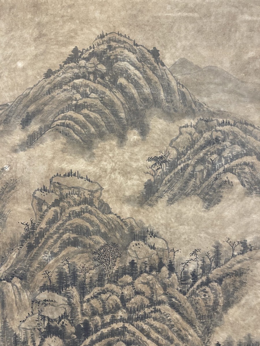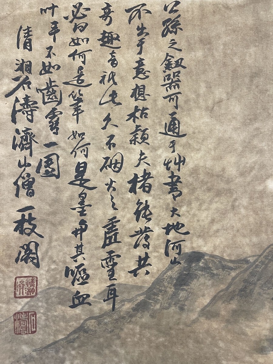 中国書画「清 石濤 退筆山水図」肉筆紙本 掛け軸 墨寶妙品 書画立軸 巻き物 古美術 旧蔵出