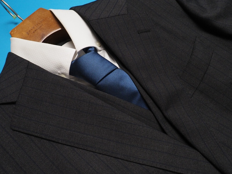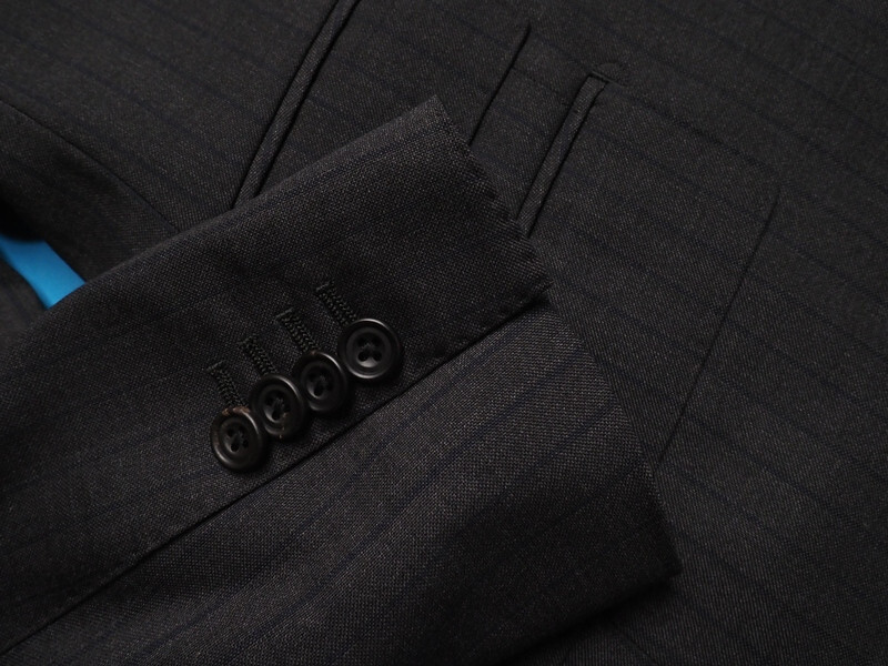 水牛ボタン、本切羽、AMFステッチ、お台場仕立て、キュプラ裏地、毛芯を用いた縫製など、既製品のブランドスーツではここまで仕立てにこだわったスーツは手に入りません。サルトリア仕立てで作成されたハイエンドモデルです。