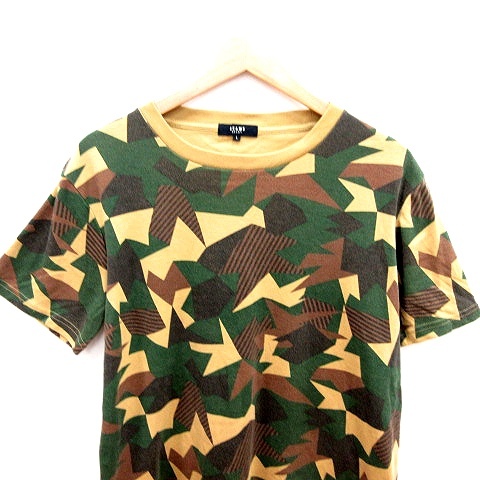 ビームスハート BEAMS HEART ニット カットソー Uネック 半袖 総柄 L オークル /RT メンズ