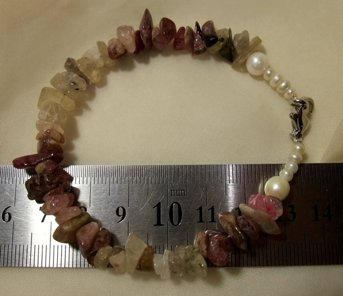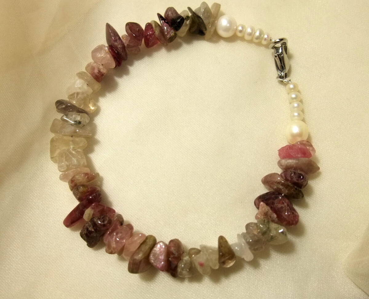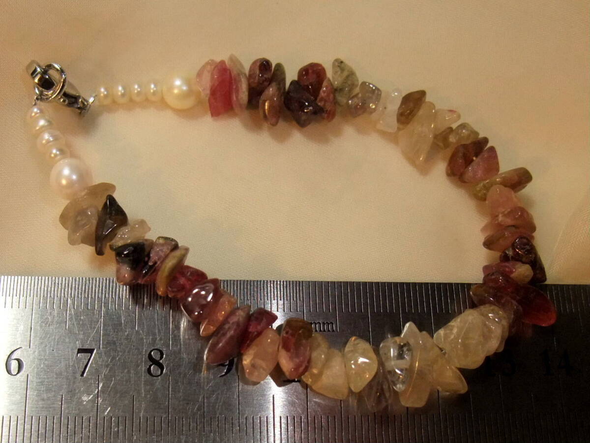綺麗!未使用tourmalineトルマリン&アコヤ真珠akoyapearl等ブレスレット!古い在庫のさざれ等バイカラー粒も!おまとめまとめて取引同梱可T08