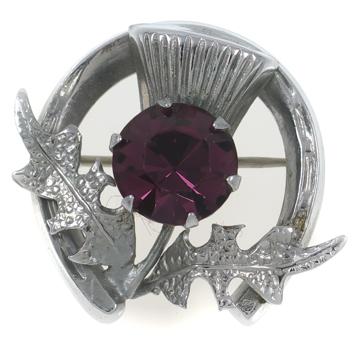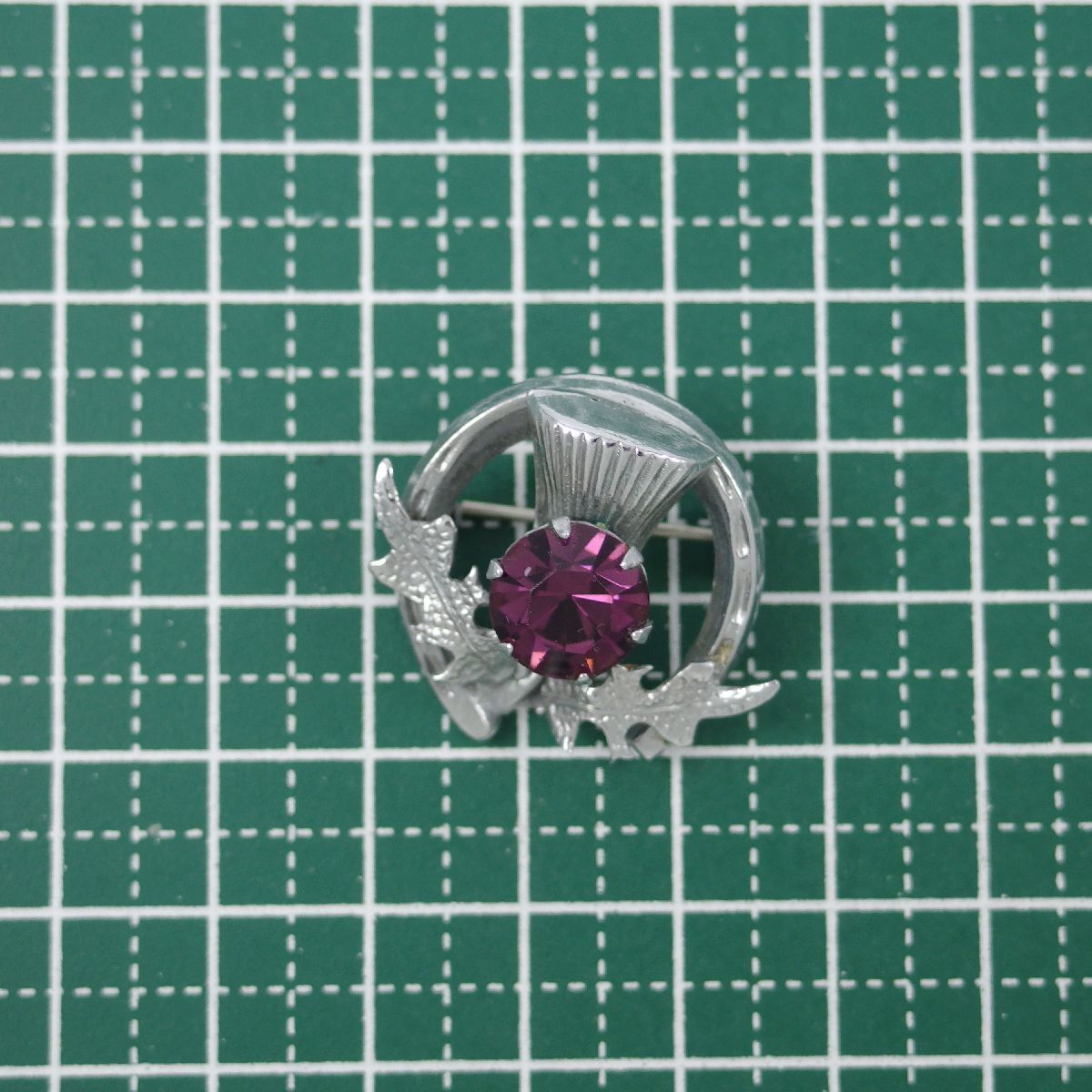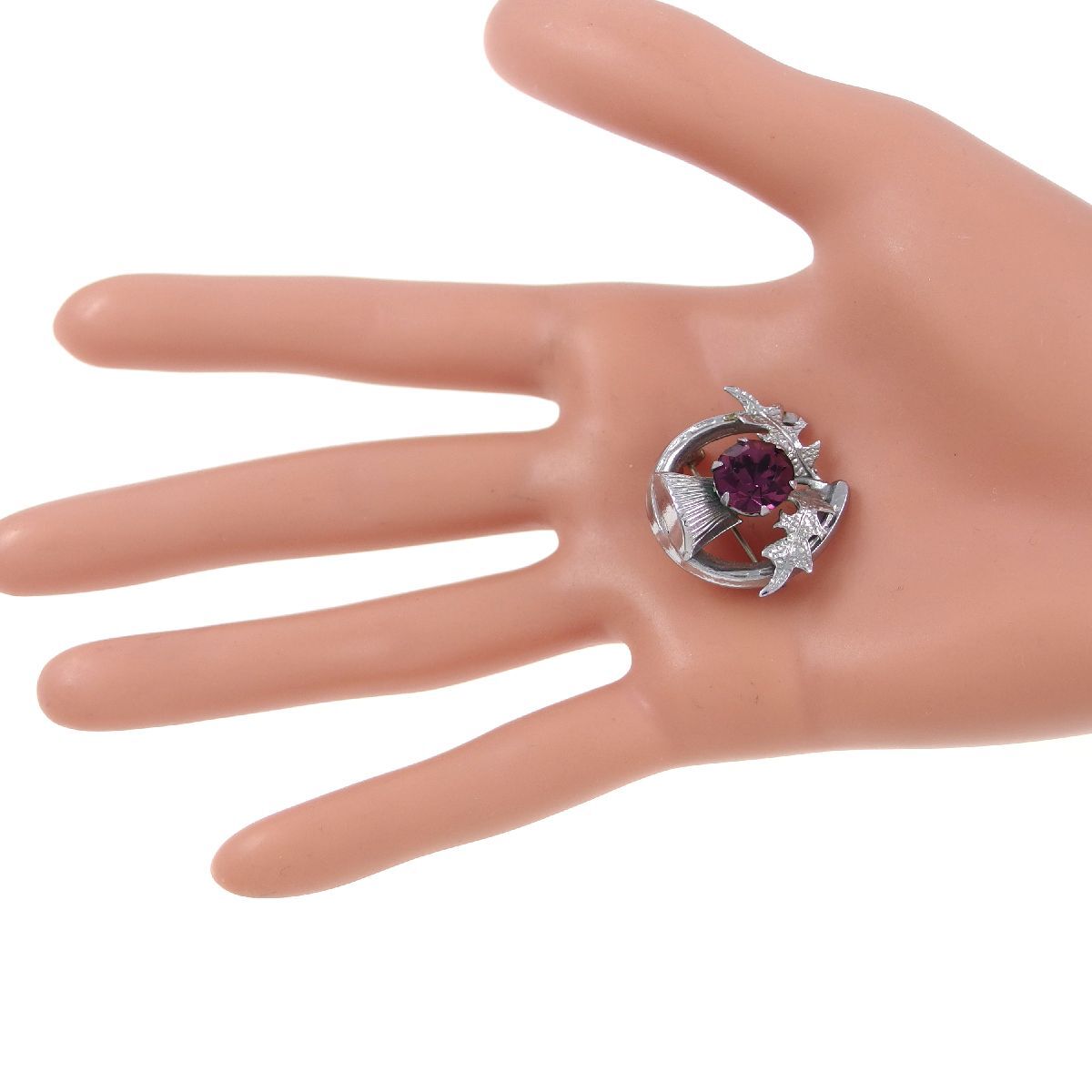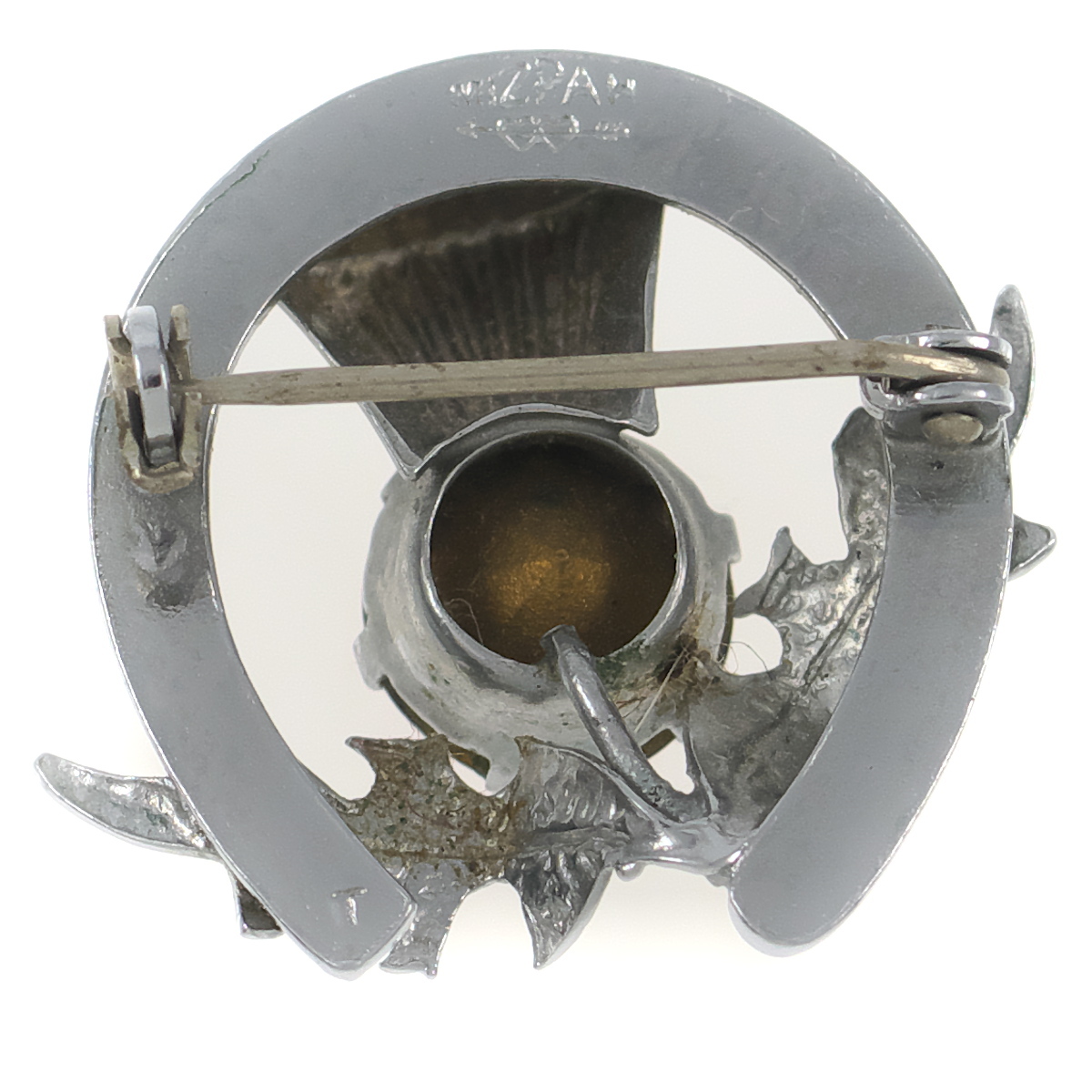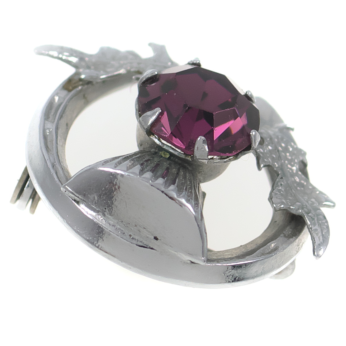 UK3697◆【MIZPAH】◆ アザミの花&馬蹄 パープル系ストーン フラワーモチーフ 幸運 ◆ ヴィンテージブローチ ◆ イギリス ケルト 英国 ◆