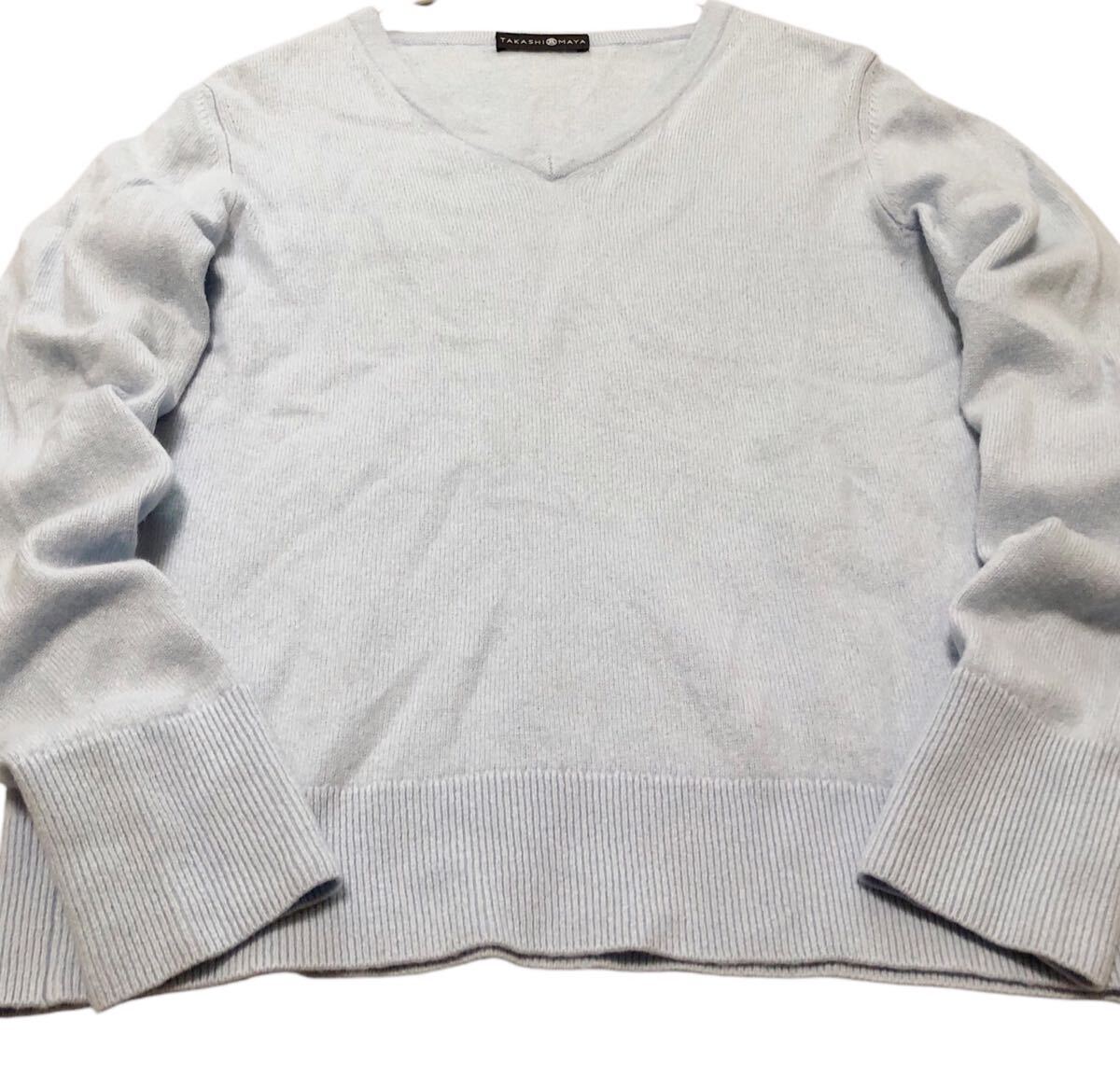大きいダメージは見当たりませんが、少し毛羽立ち、少し毛玉、薄い汚れがあります。