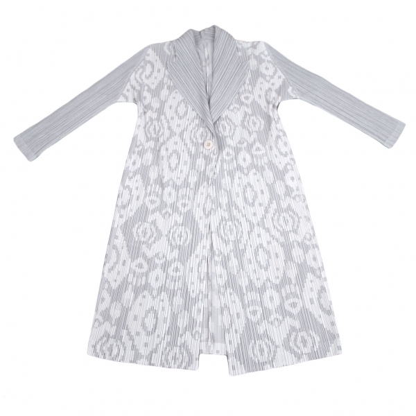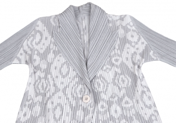 プリーツプリーズPLEATS PLEASE 幾何学ジャガードロングジャケット グレー2 |