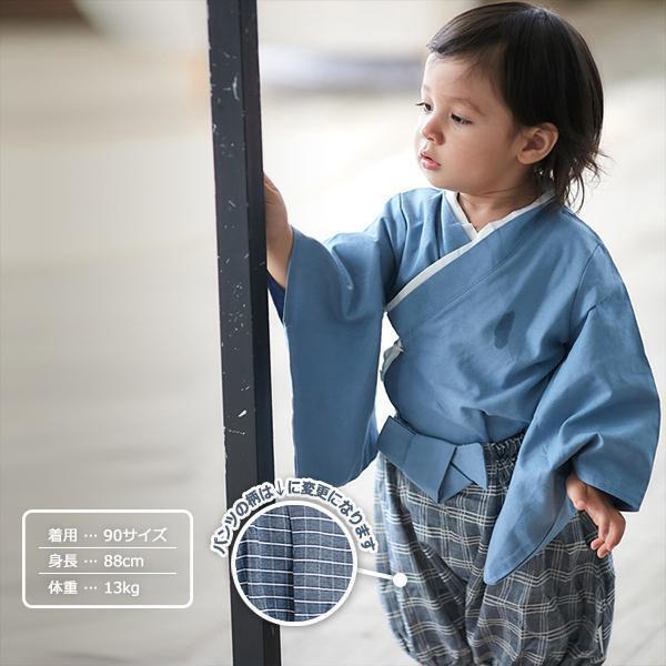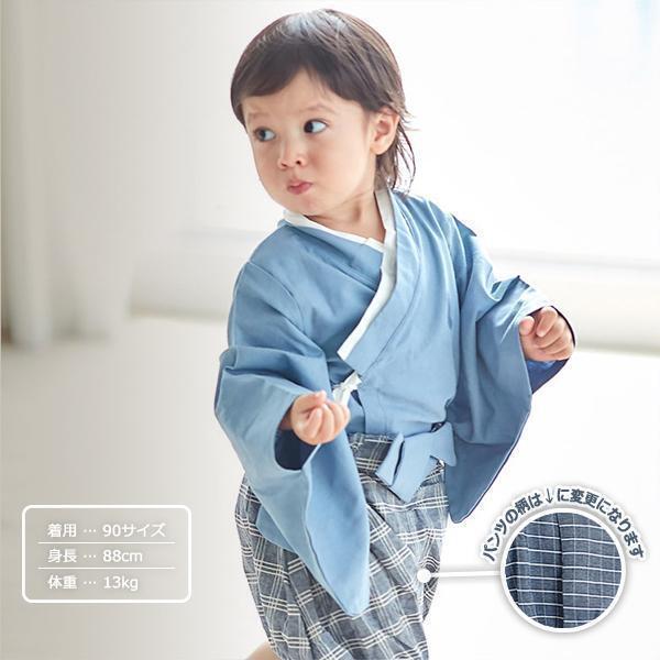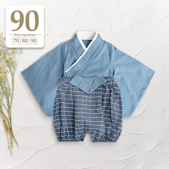 新品未使用 90cm ブルー〔#BMセパレート袴〕セットアップ 袴ロンパース ベビー 子供 男の子 着物 和服 お食い初め 初節句 こどもの日 端午
