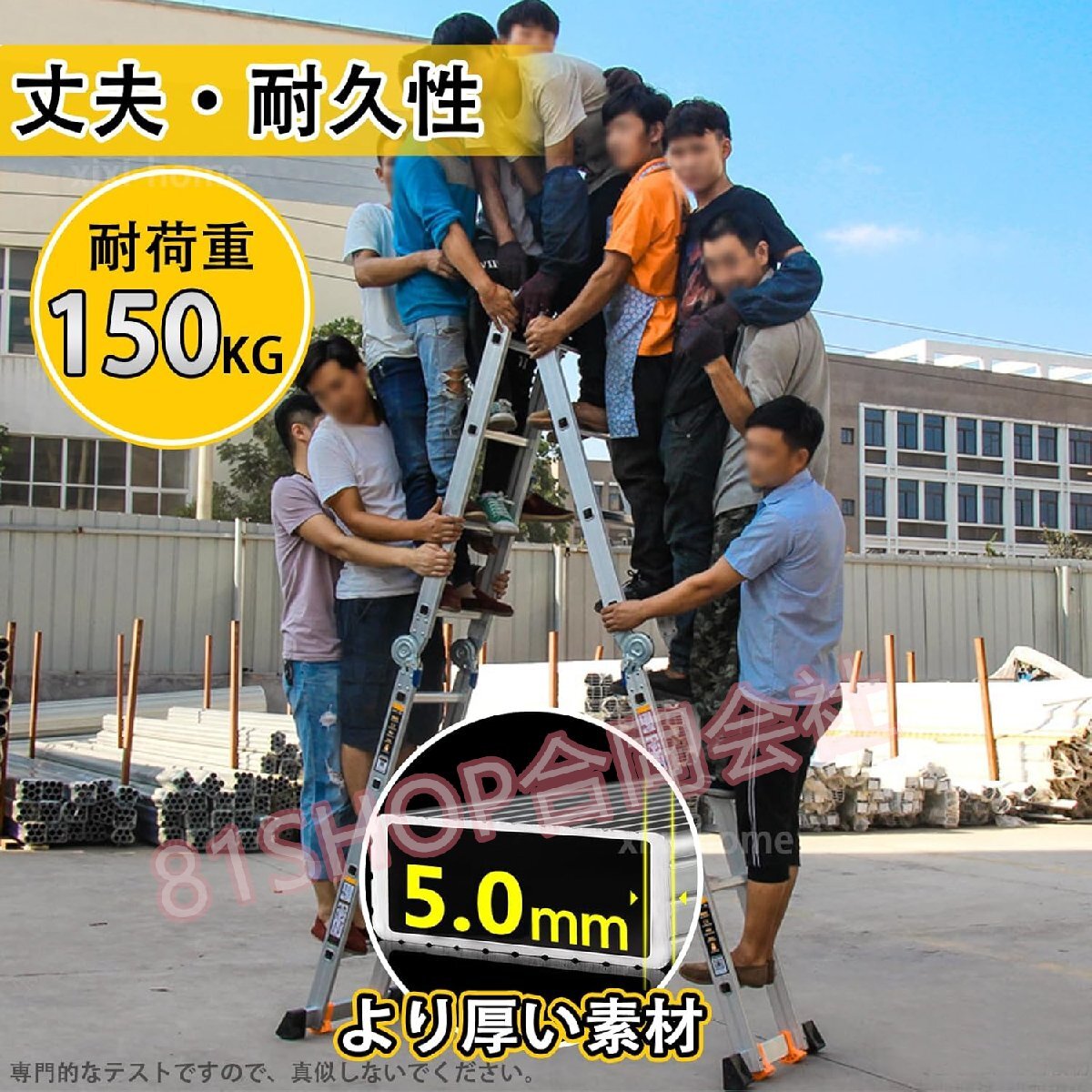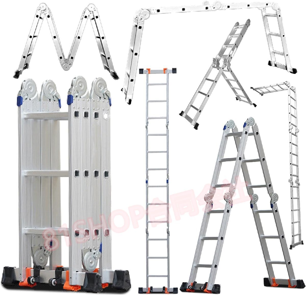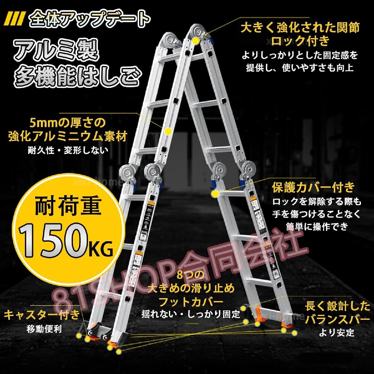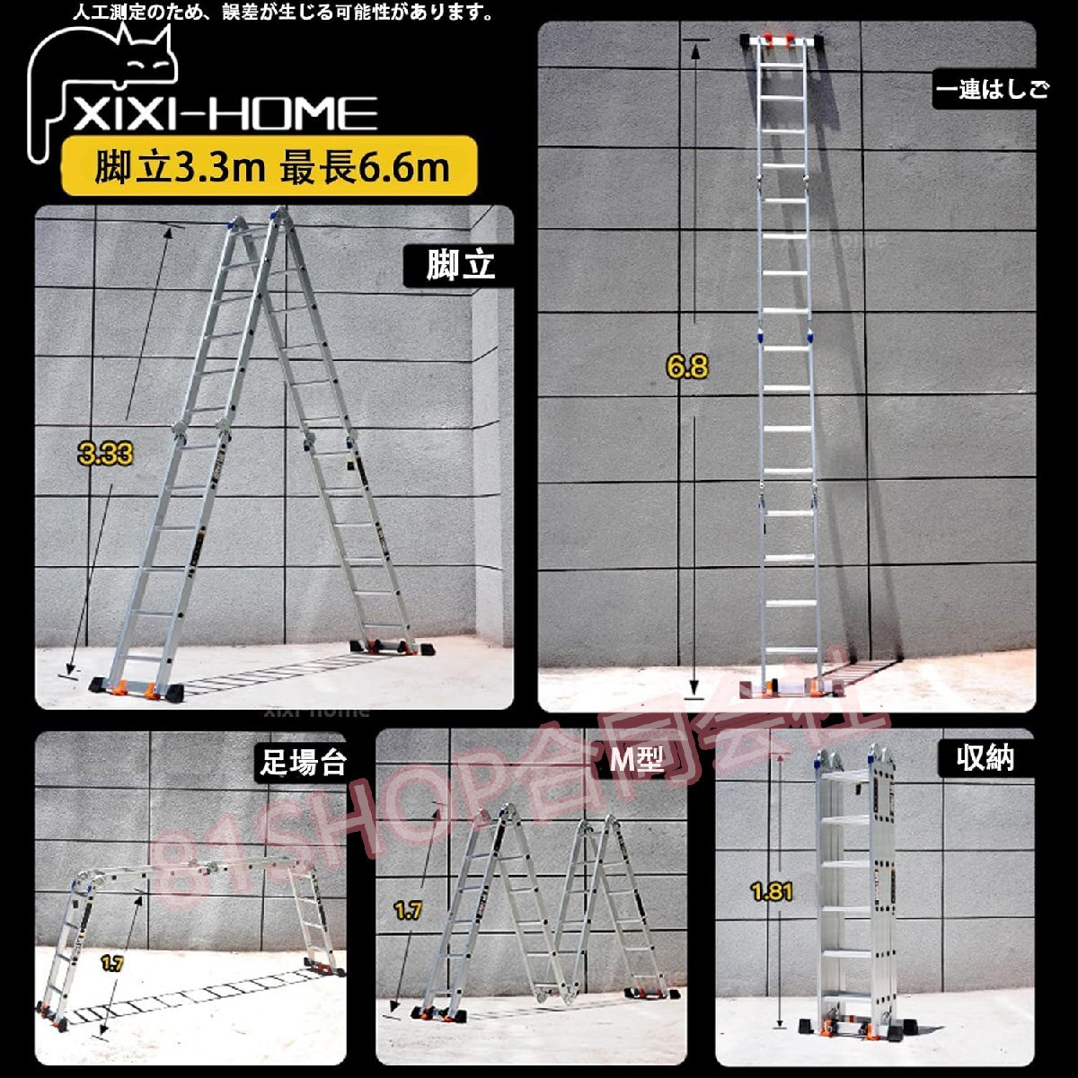 多機能はしご 最長6.6m 耐荷重150KG アルミ 5mm厚み 多関節脚立 はしご兼用脚立 自由変形 折りたたみ 伸縮はしご 持ち運びやすい キャスタ