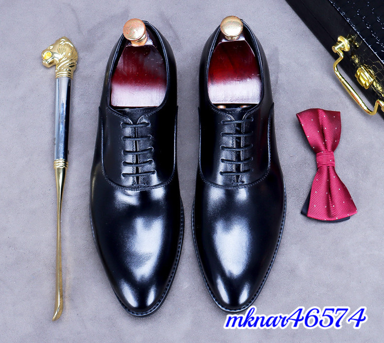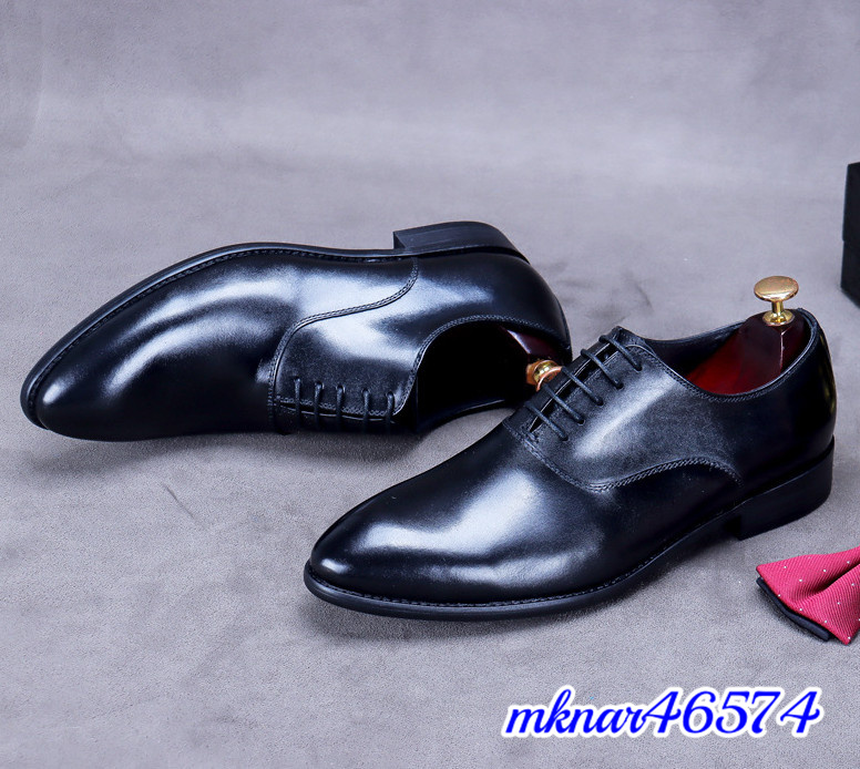 高級◆ビジネスシューズ メンズ 本革 レザーシューズ 職人手作り 高級牛革 紳士靴 革靴 フォーマル 通勤 ブラック 大きいサイズ有 24.5cm