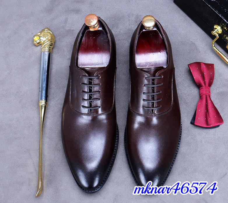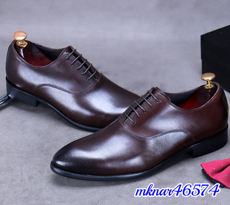 高級◆ビジネスシューズ メンズ 本革 レザーシューズ 職人手作り 高級牛革 紳士靴 革靴 フォーマル 通勤 珈琲色 大きいサイズ有 24.5cm